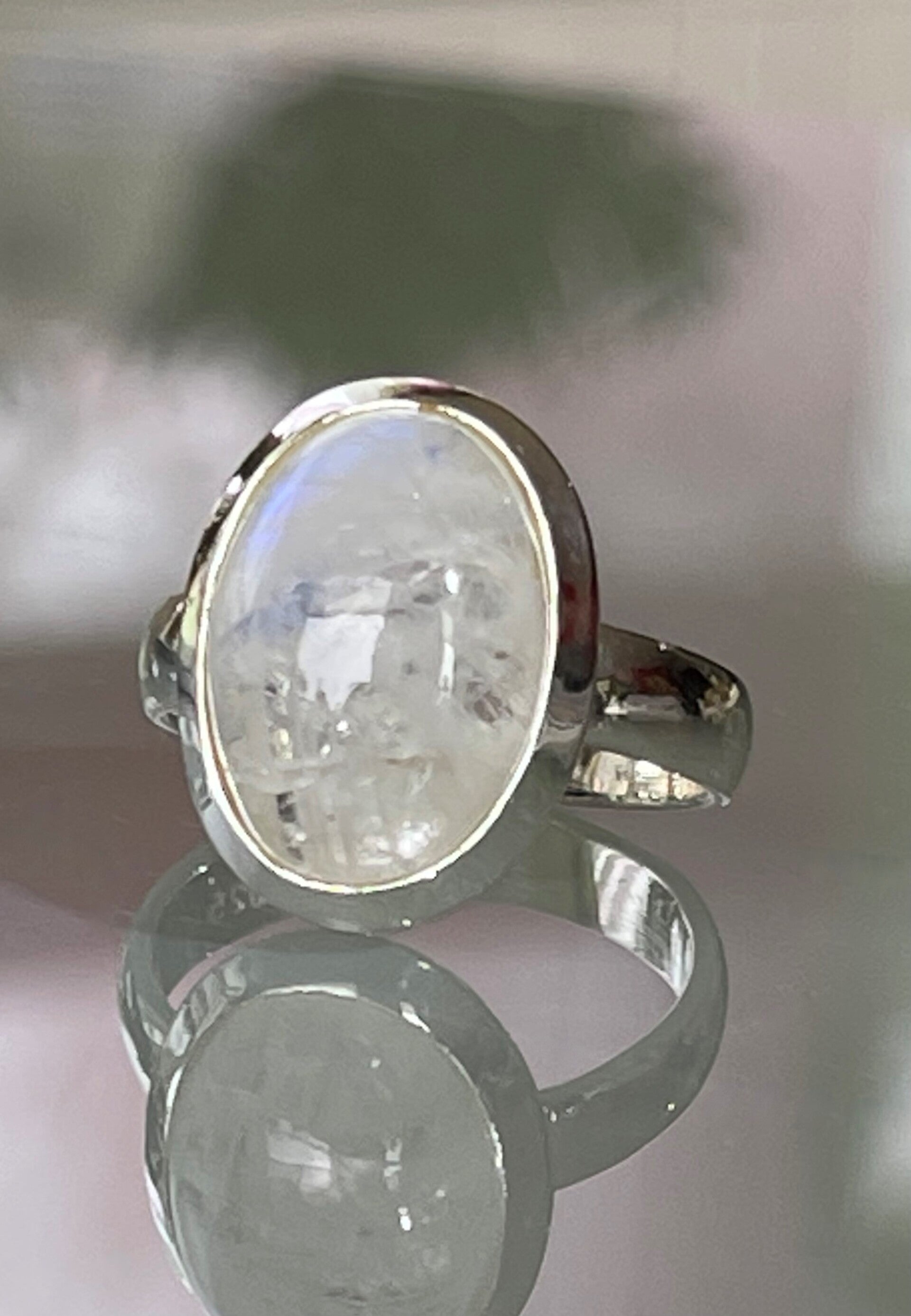 Zilveren ring met Regenboog Maansteen edelsteen cabochon ovaal