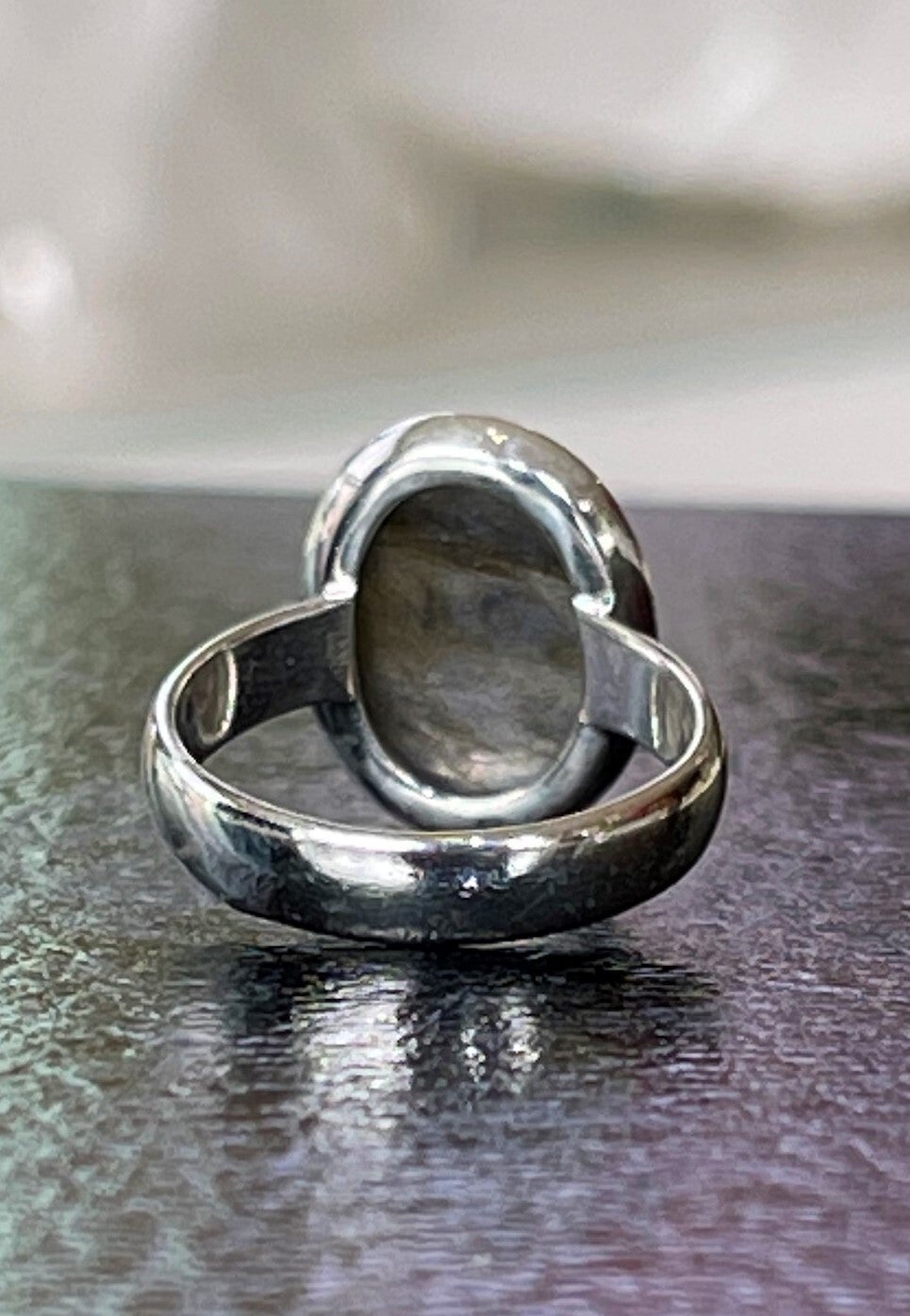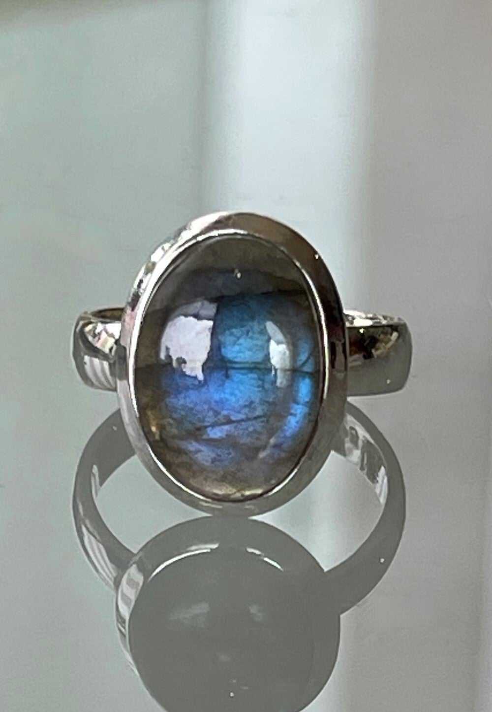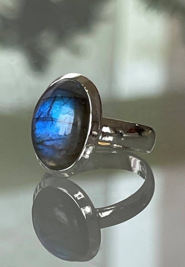 Zilveren ring met Labradoriet edelsteen cabochon ovaal