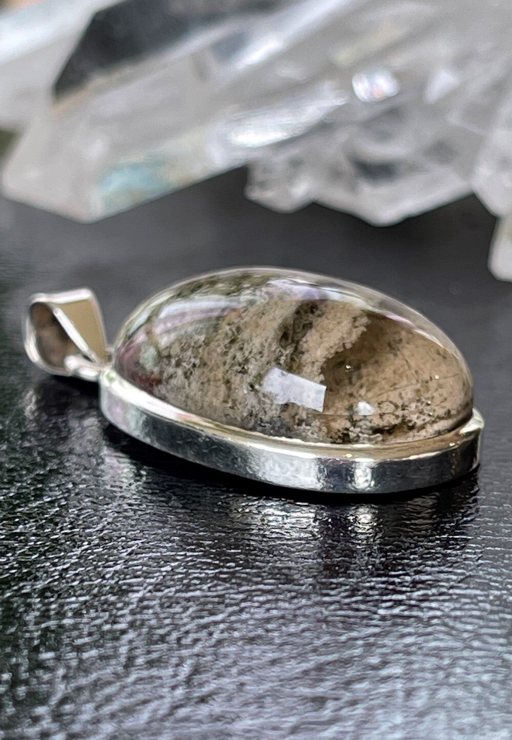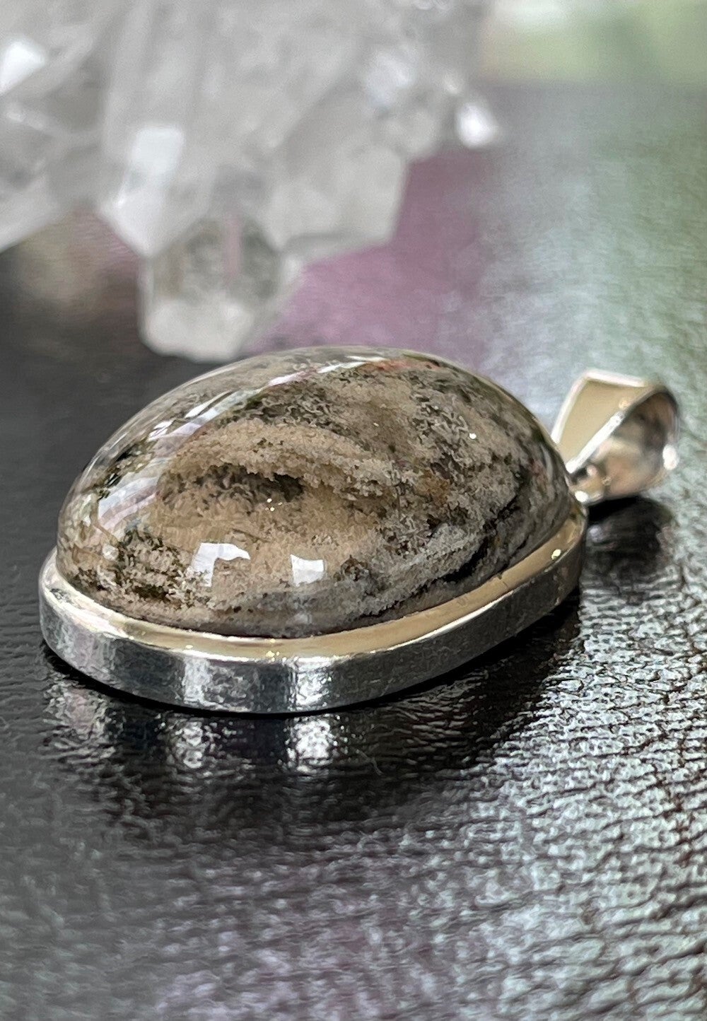 Zilveren hangertje met Lodoliet edelsteen cabochon ovaal, medium