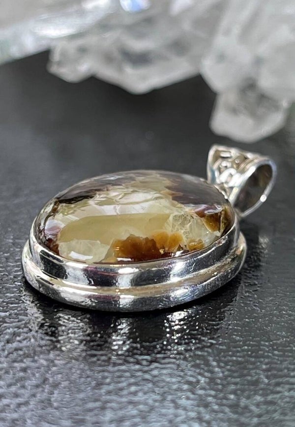 Zilveren hangertje met Septarie edelsteen cabochon ovaal