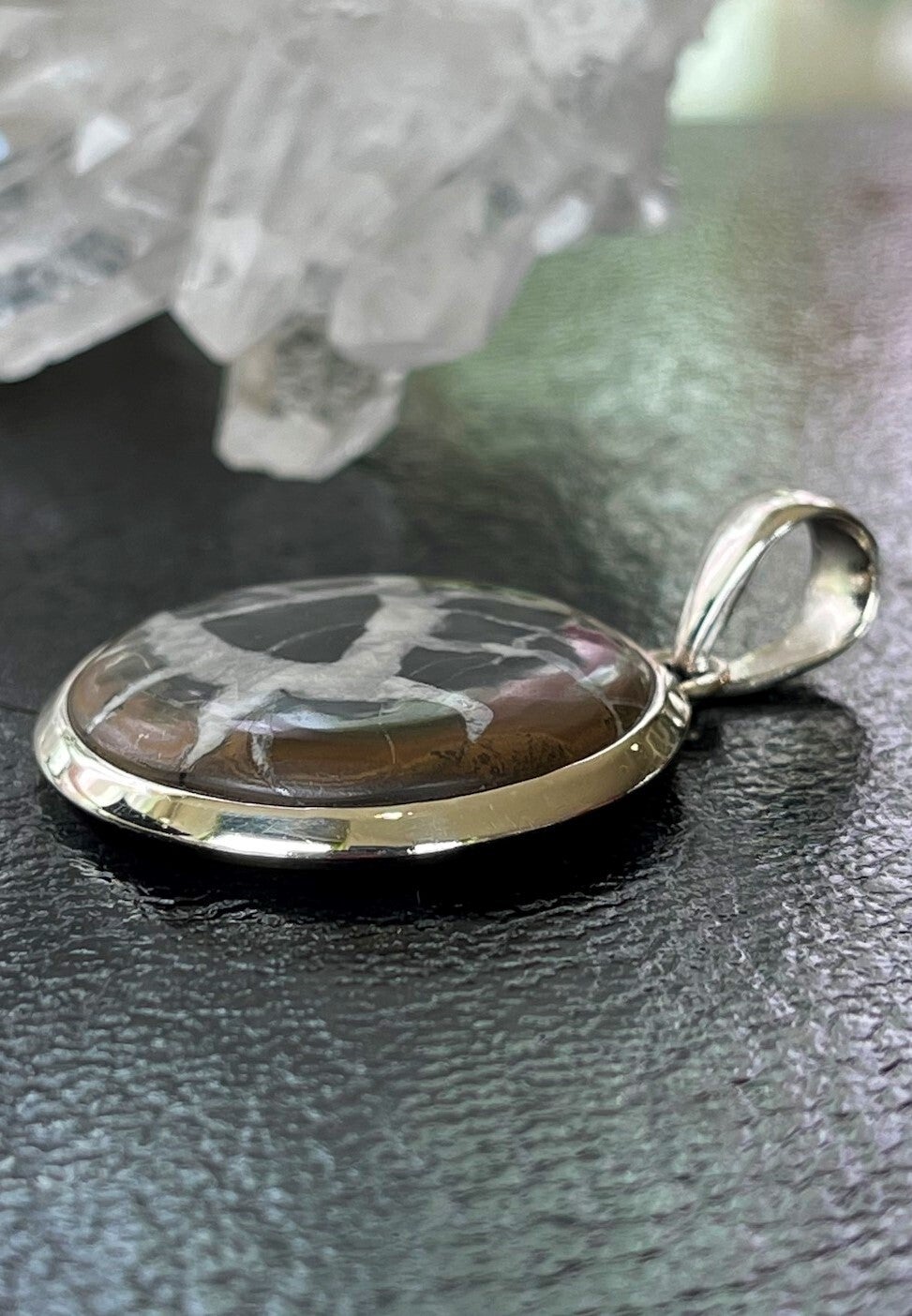Zilveren hangertje met Septarie Gronates edelsteen cabochon rond