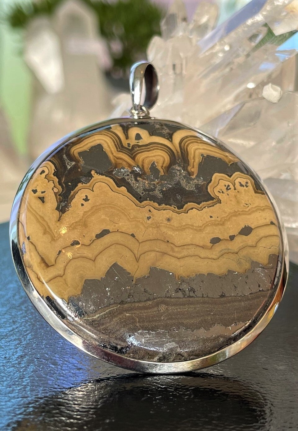 Zilveren hangertje met Schalenblende edelsteen cabochon rond, groot
