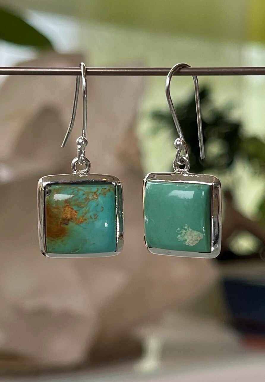 Zilveren oorbellen met Turkoois edelstenen uit Tibet, cabochon vierkant