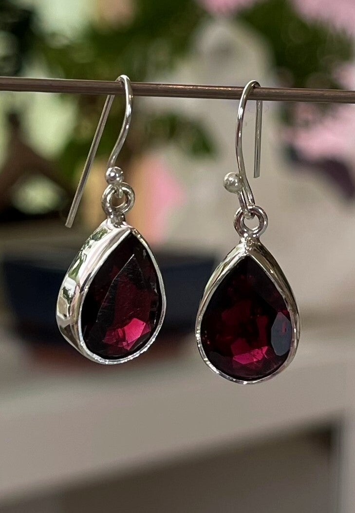 Zilveren oorbellen met Granaat edelstenen facet geslepen druppel
