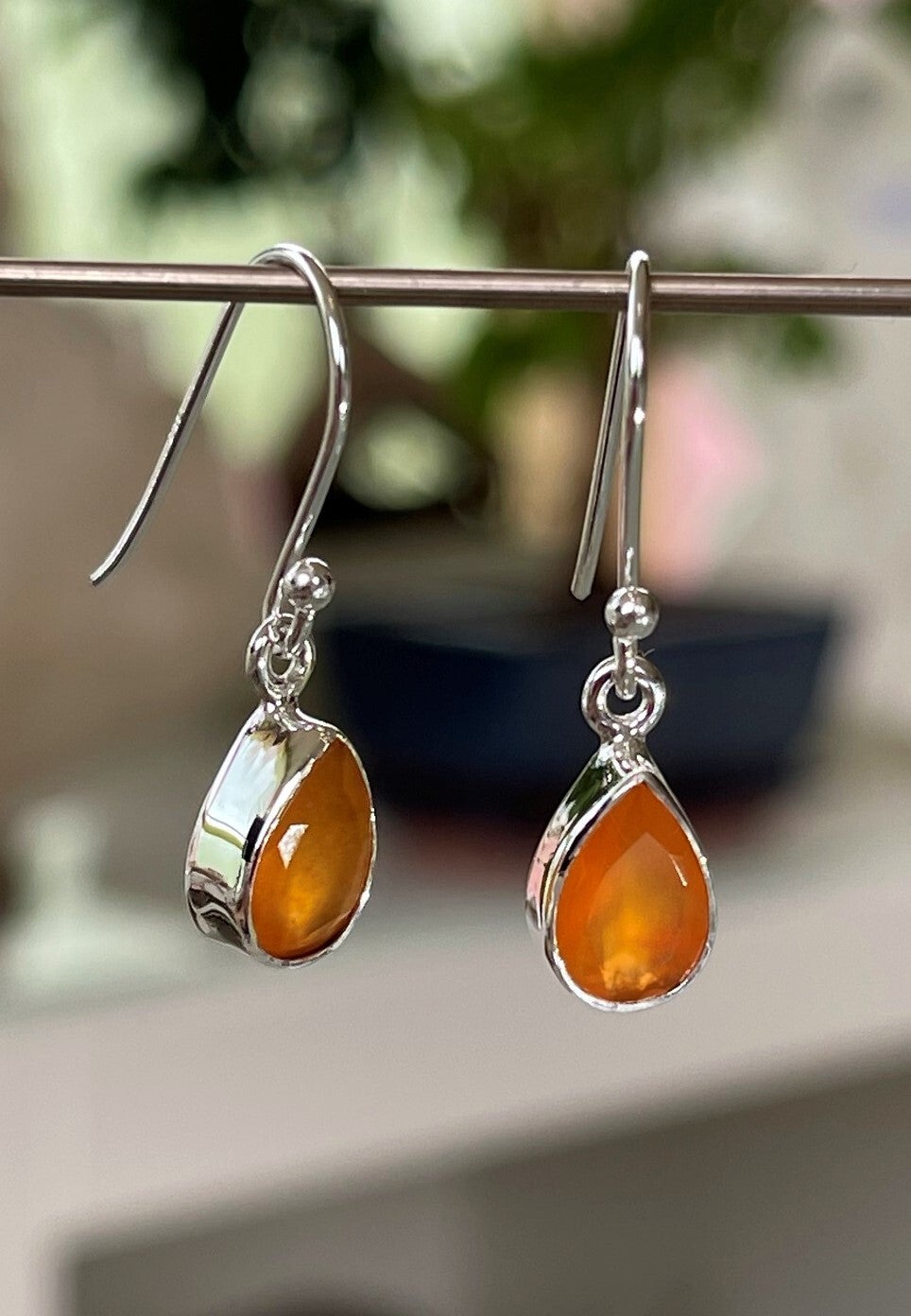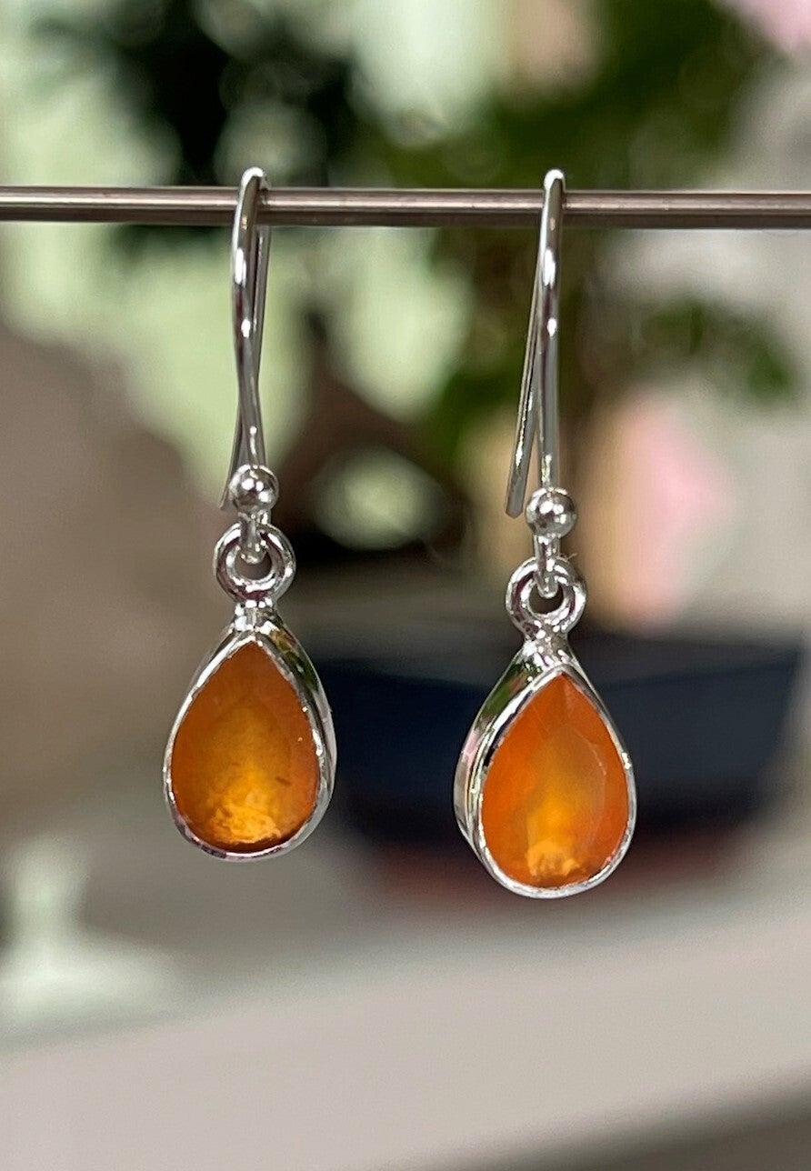 Zilveren oorbellen met Carneool edelstenen facet geslepen druppel, klein