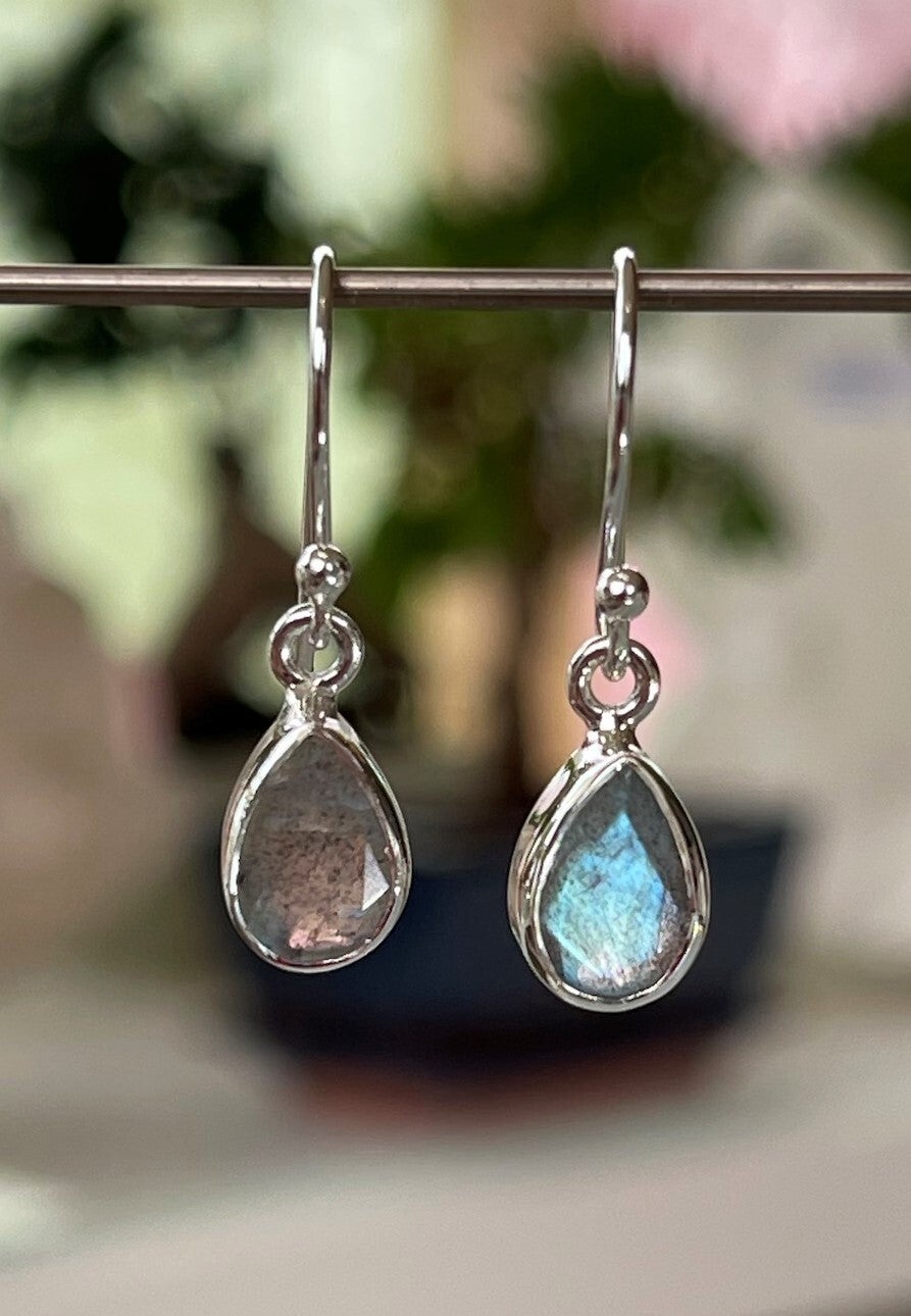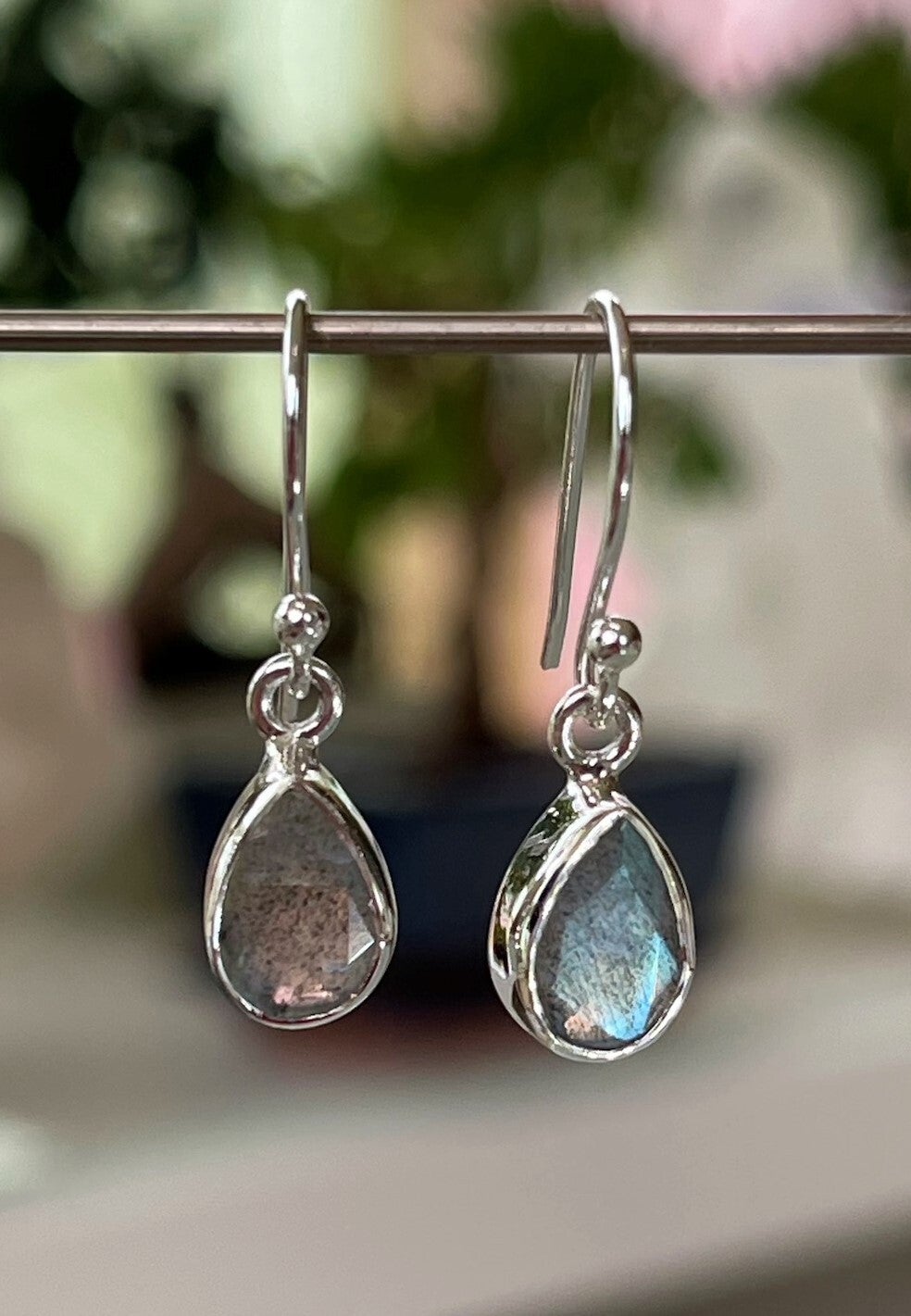 Zilveren oorbellen met Labradoriet edelstenen facet geslepen