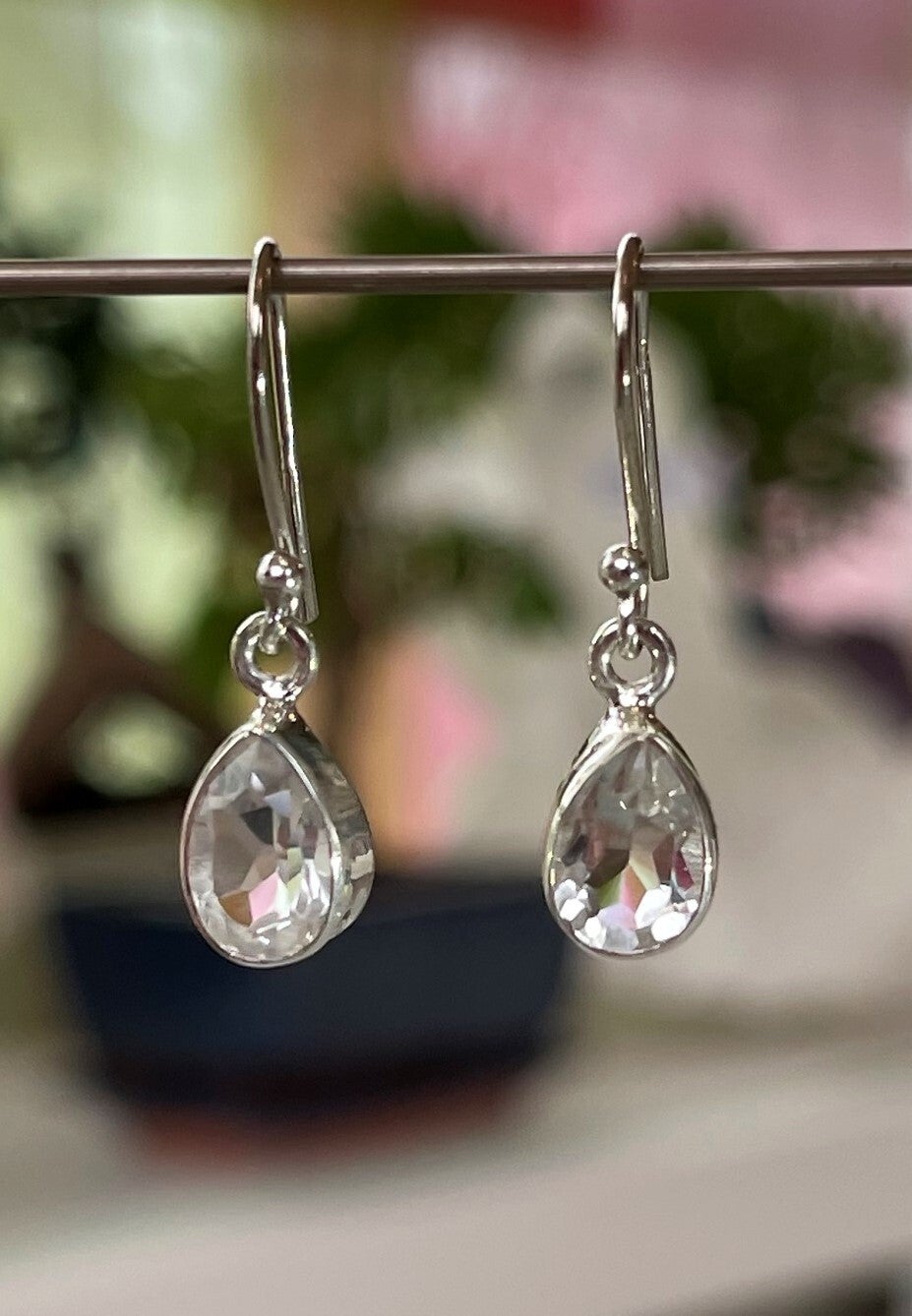 Zilveren oorbellen met Bergkristal edelstenen facet geslepen druppel, klein
