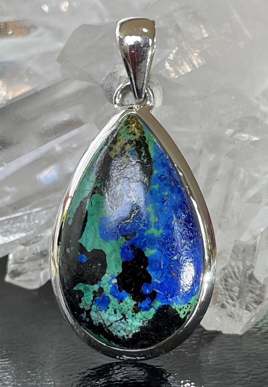 Zilveren hangertje met Azuriet en Malachiet edelsteen, cabochon druppel, medium