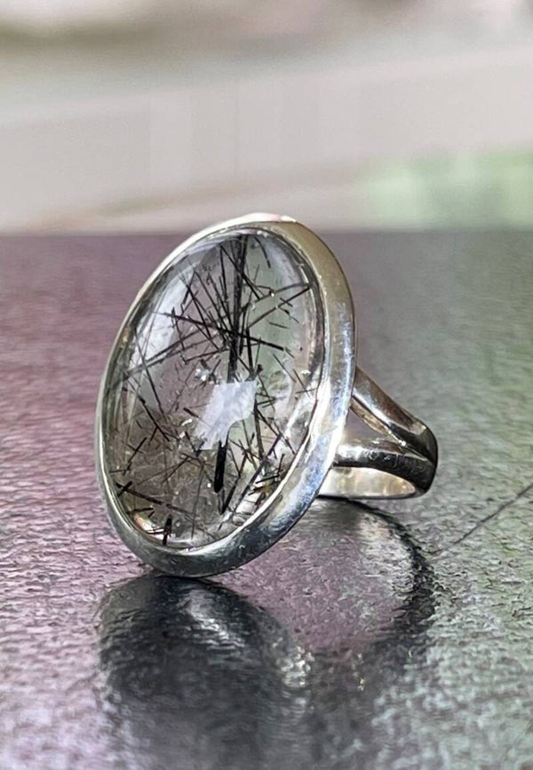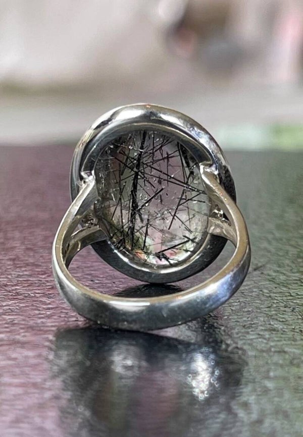 Toermalijnkwarts ring cabochon ovaal, maat 16,9