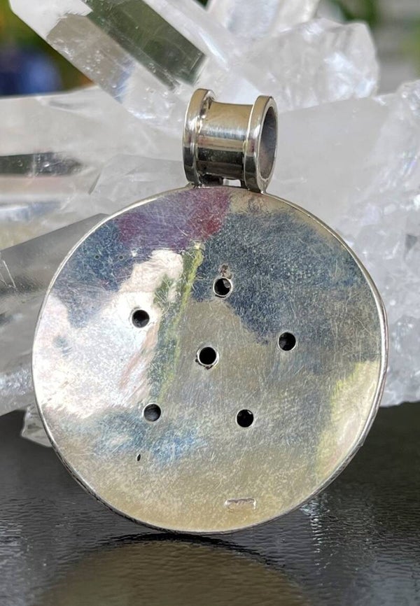 Rond zilveren hangertje met zwarte Onyx edelstenem, cabochon uit Tibet, medium
