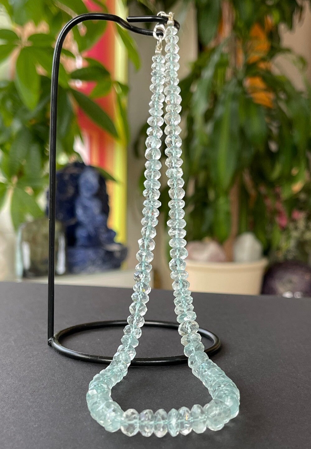 Prachtige ketting met Blauwe Topaas edelstenen facet geslepen naturel van kleur en zilveren sluiting, uit Brazilië