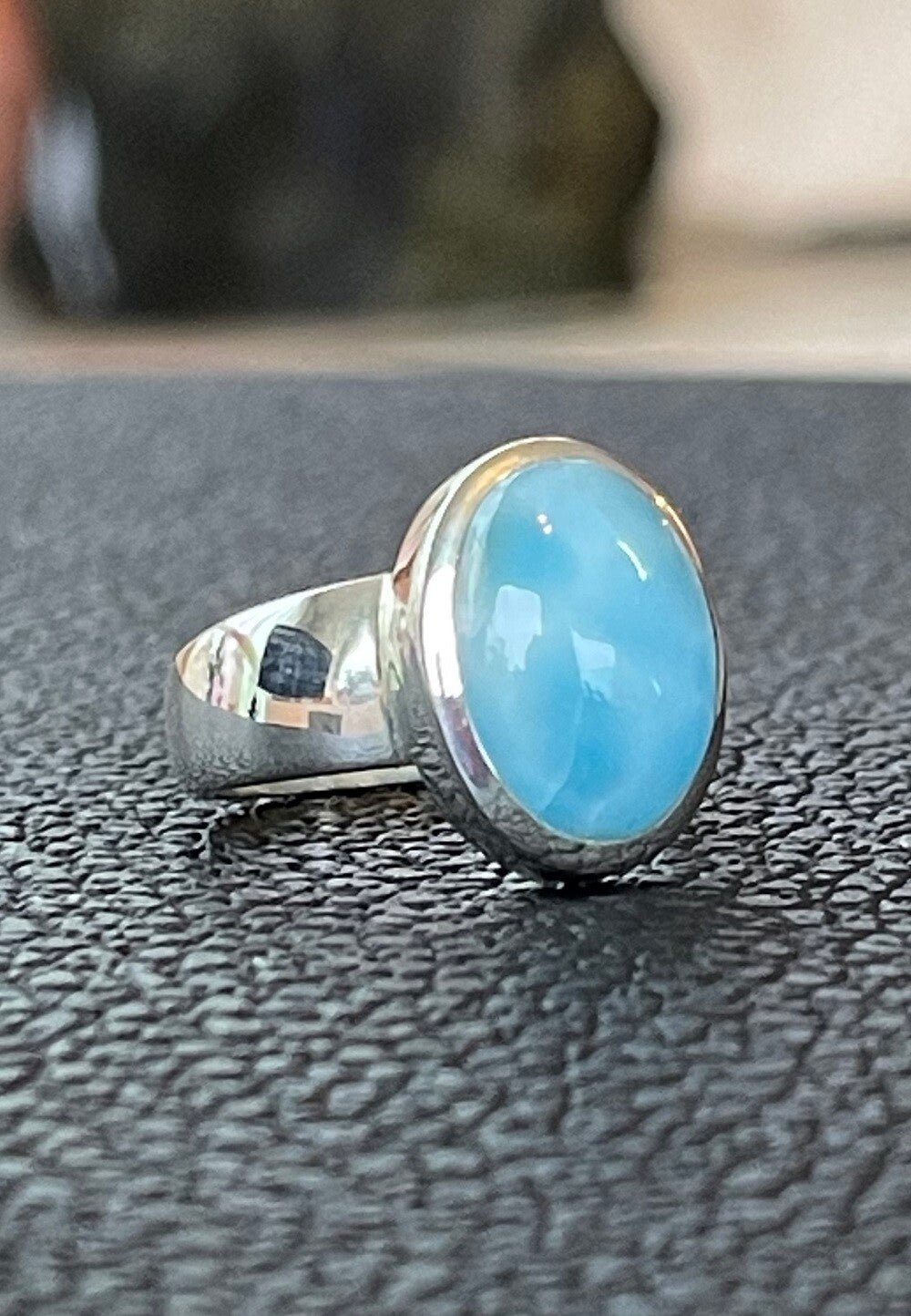 Zilveren ring met Larimar edelsteen cabochon ovaal met brede band