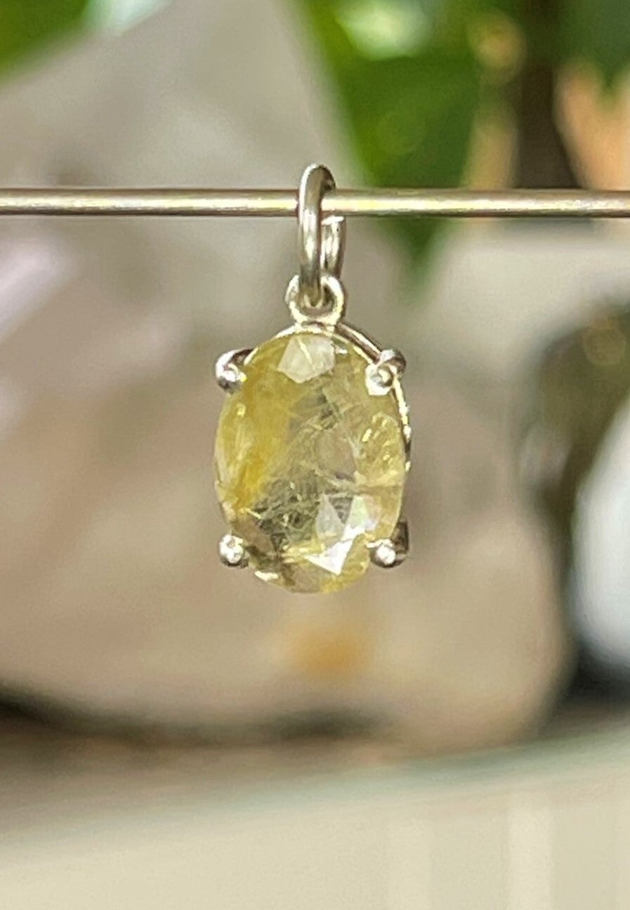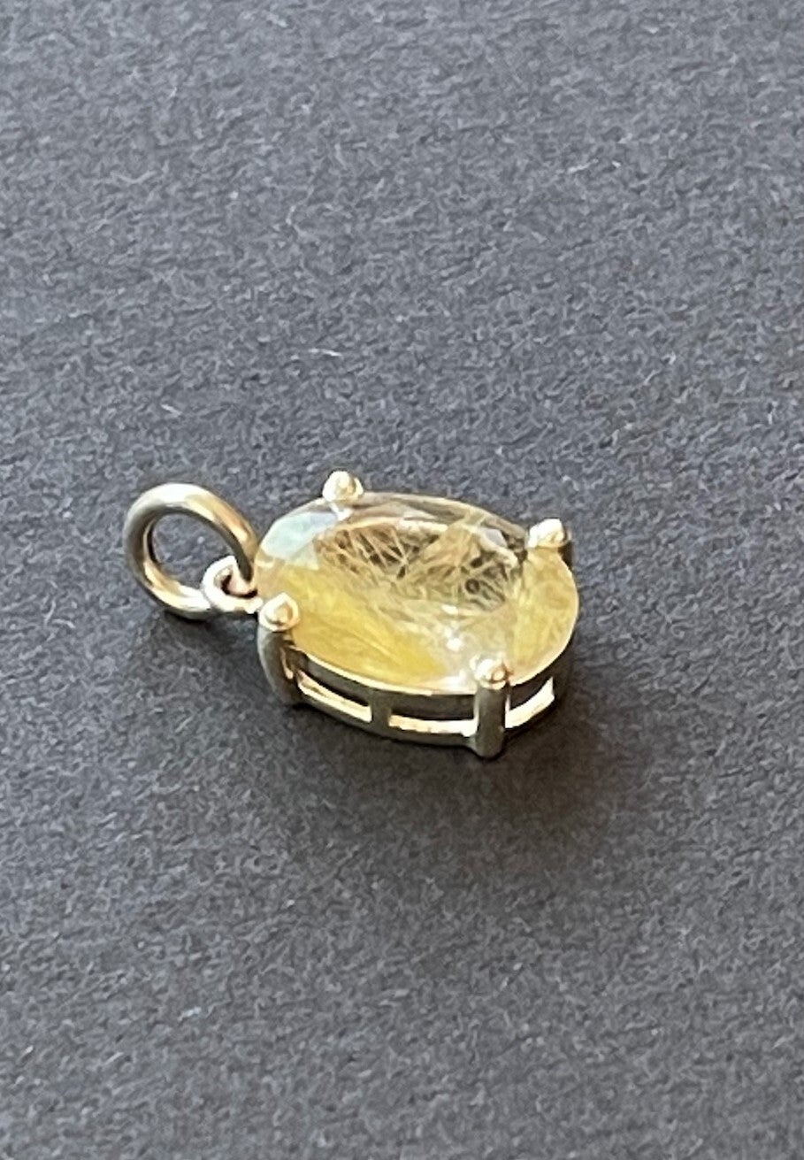 Zilveren hangertje met Gouden Rutielkwarts edelsteen facet geslepen ovaal, klein