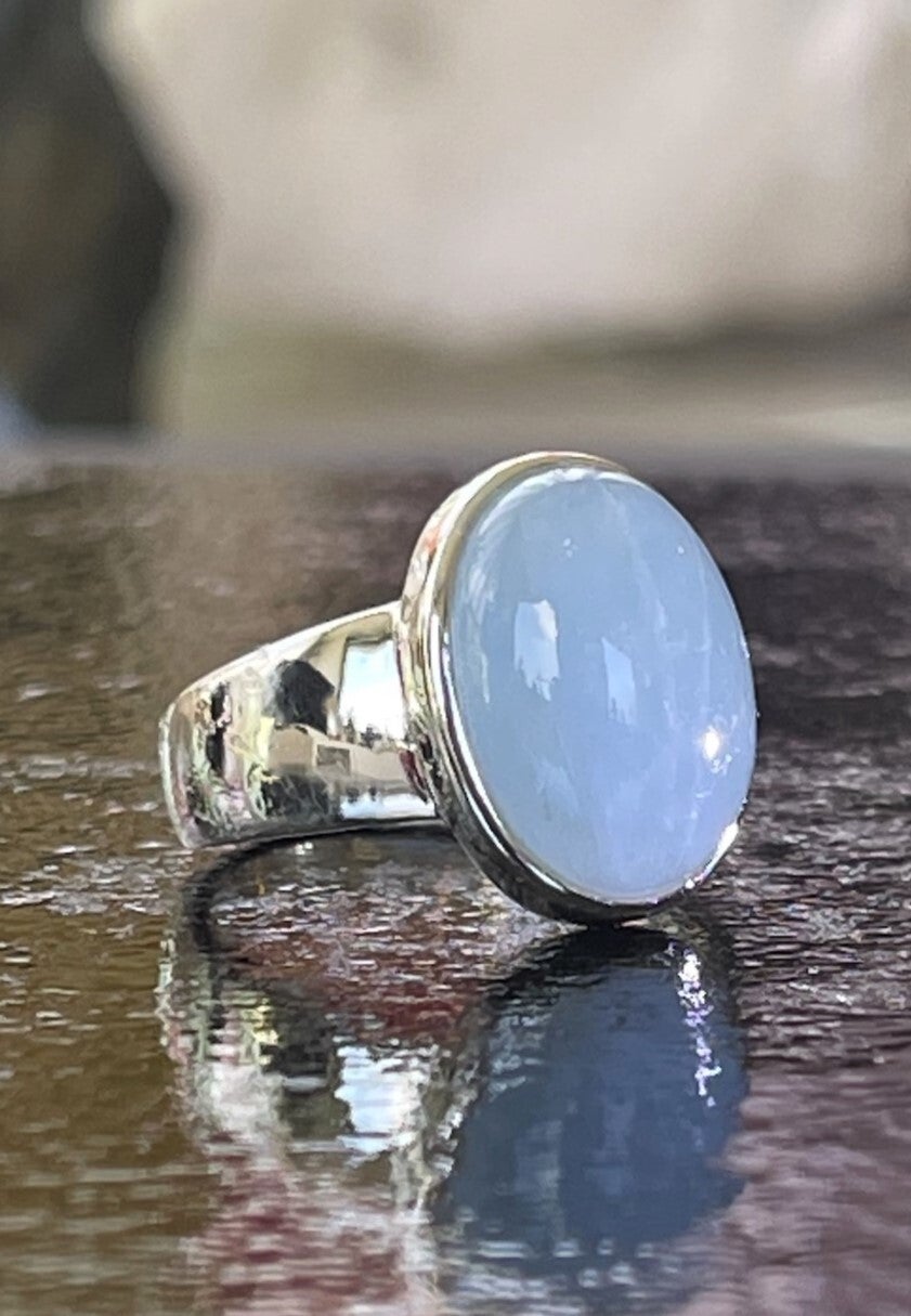 Zilveren ring met Aquamarijn edelsteen cabochon ovaal, met brede band
