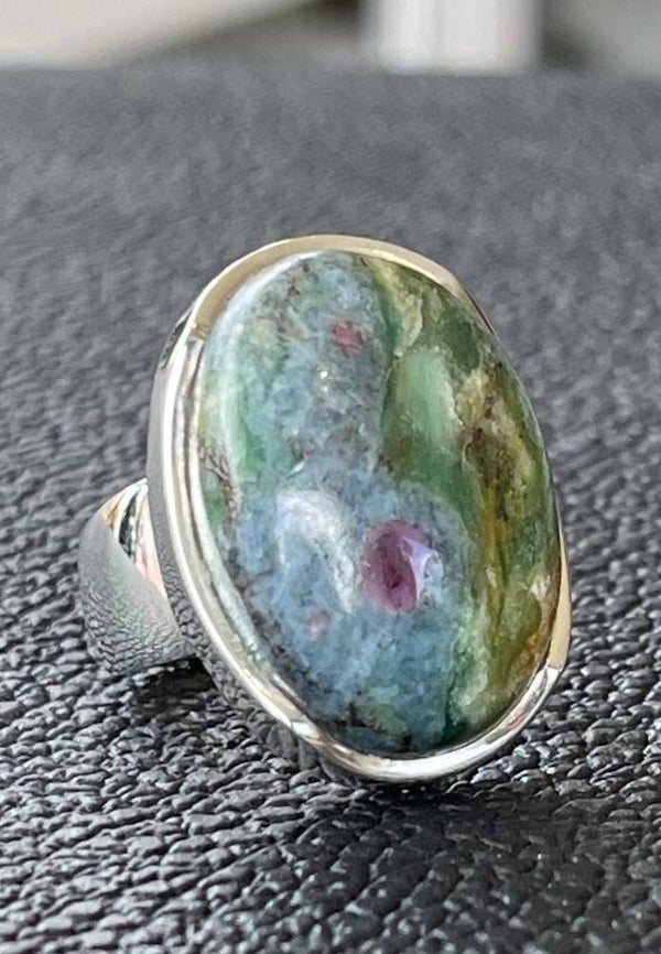 Robijn in Fuchsiet ring cabochon ovaal, maat 18,2