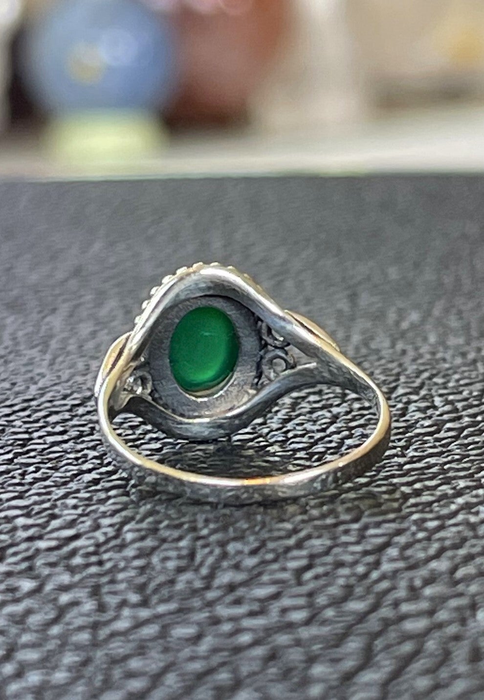 Zilveren ring met groene Onyx edelsteen cabochon ovaal, klein