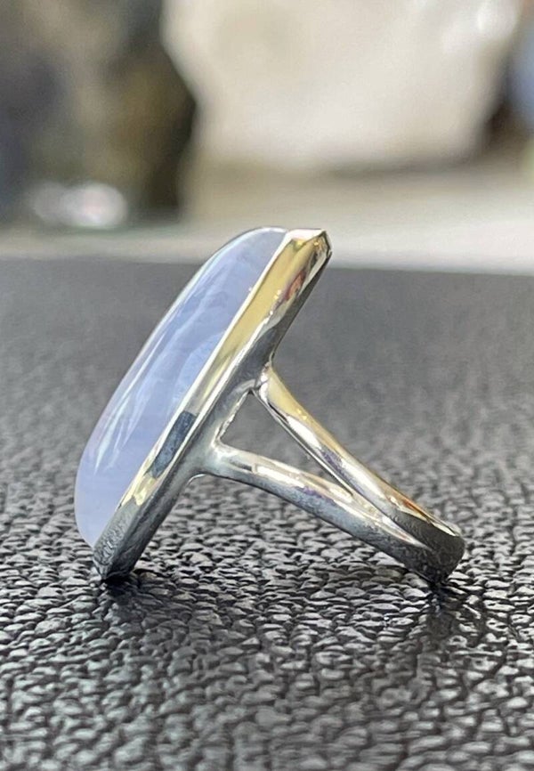 Zilveren ring met Blue Lace Agaat edelsteen cabochon ovaal