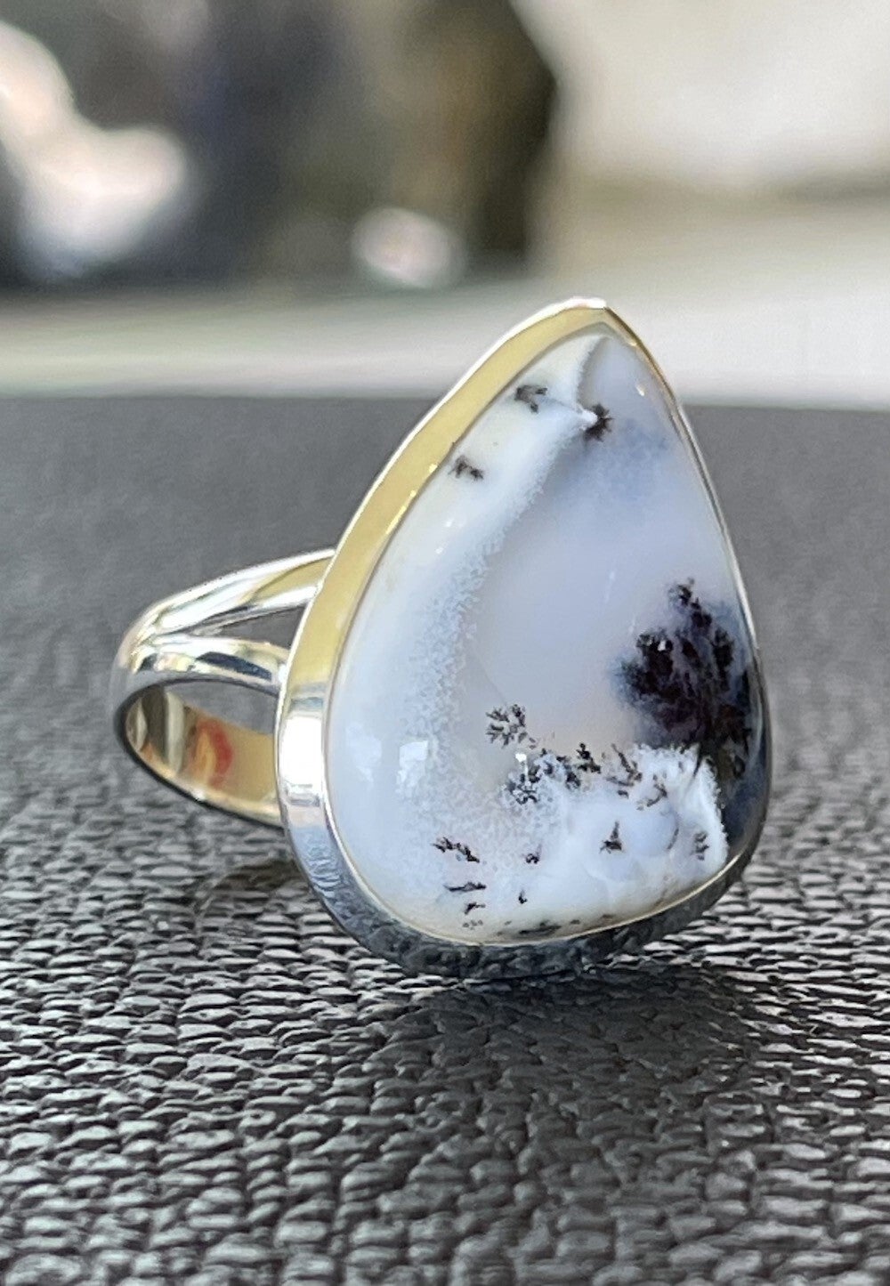 Dendriet Agaat ring cabochon free form, maat 19,1