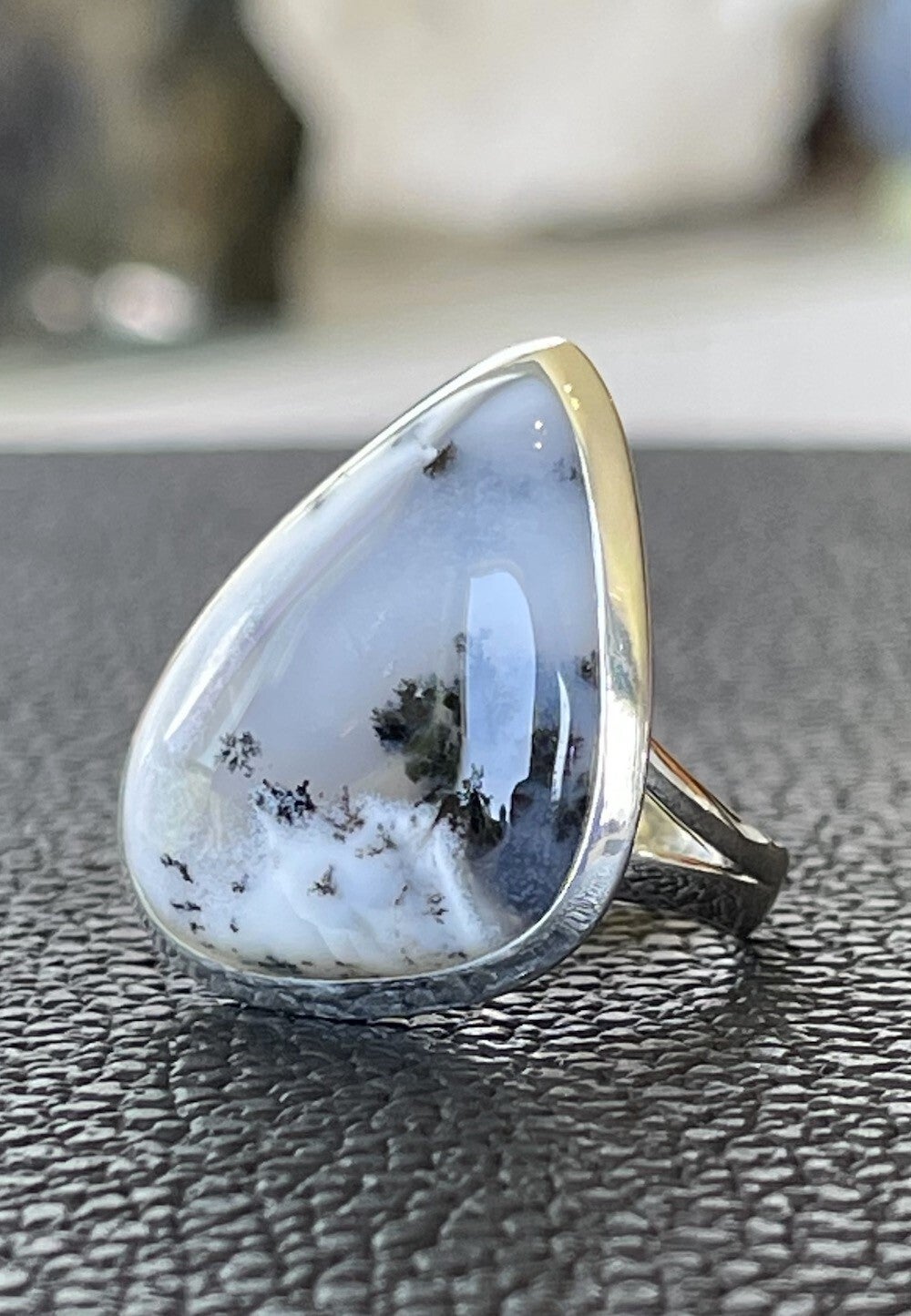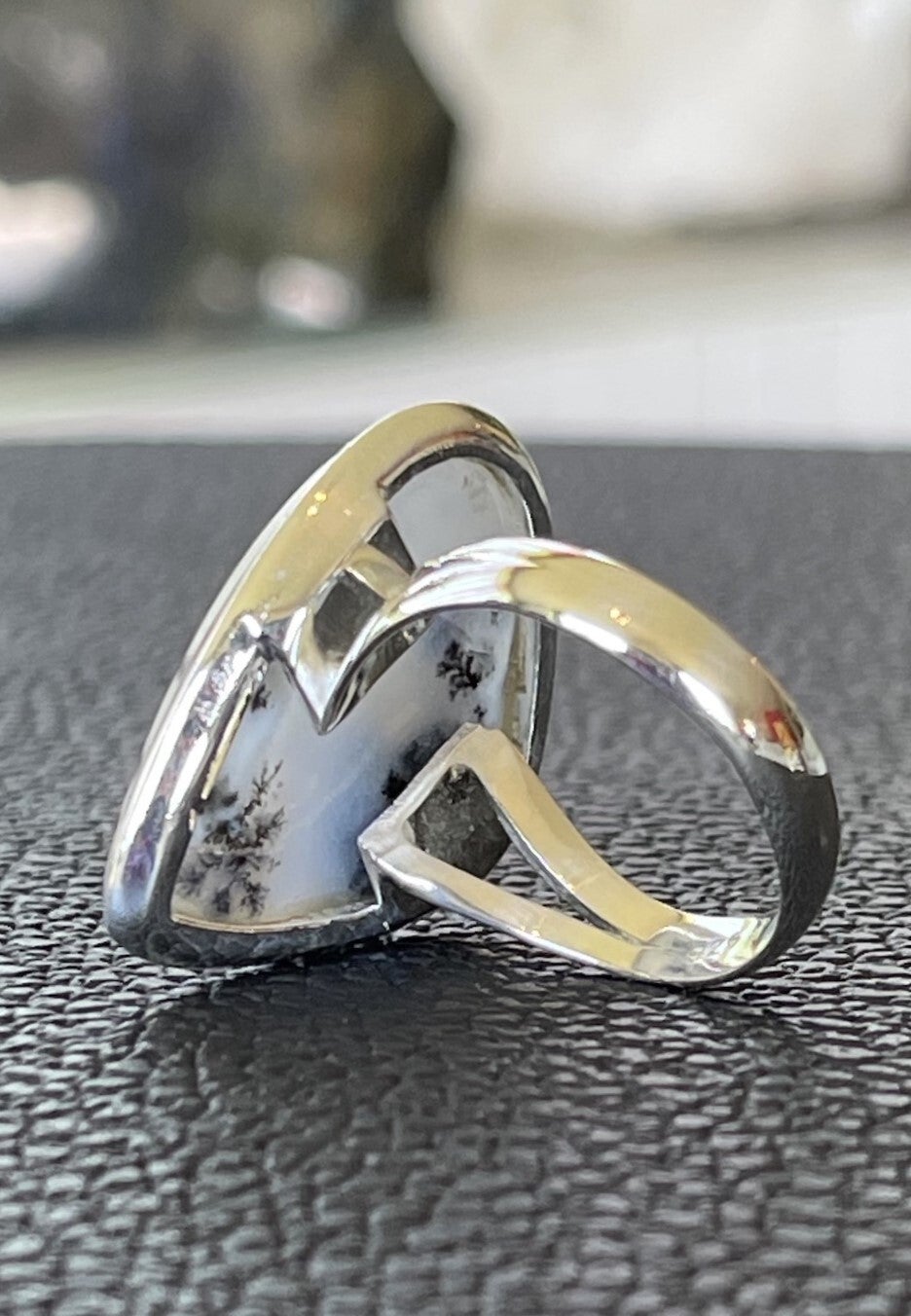 Zilveren ring met Dendriet Agaat edelsteen cabochon free form