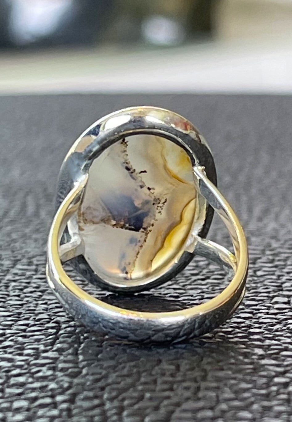 Zilveren ring met Montana Agaat edelsteen cabochon ovaal