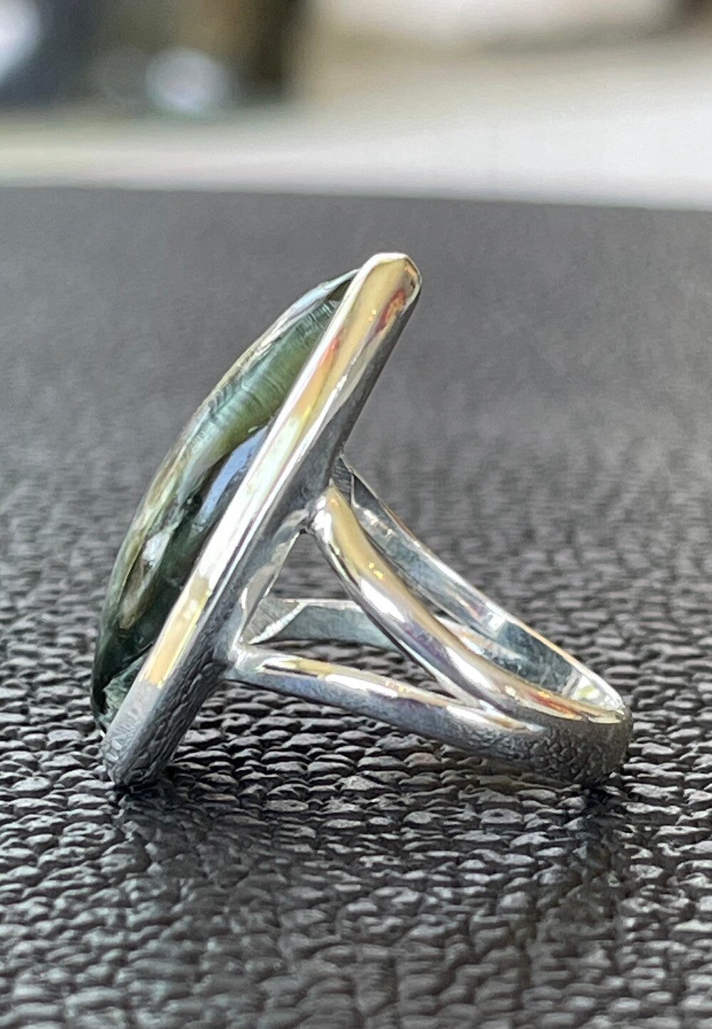 Zilveren ring met Serafiniet edelsteen cabochon free form