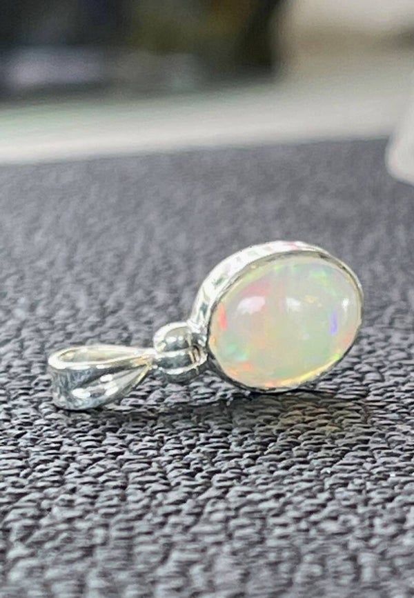 Zilveren hangertje met Ethiopische Opaal edelsteen, cabochon ovaal, klein