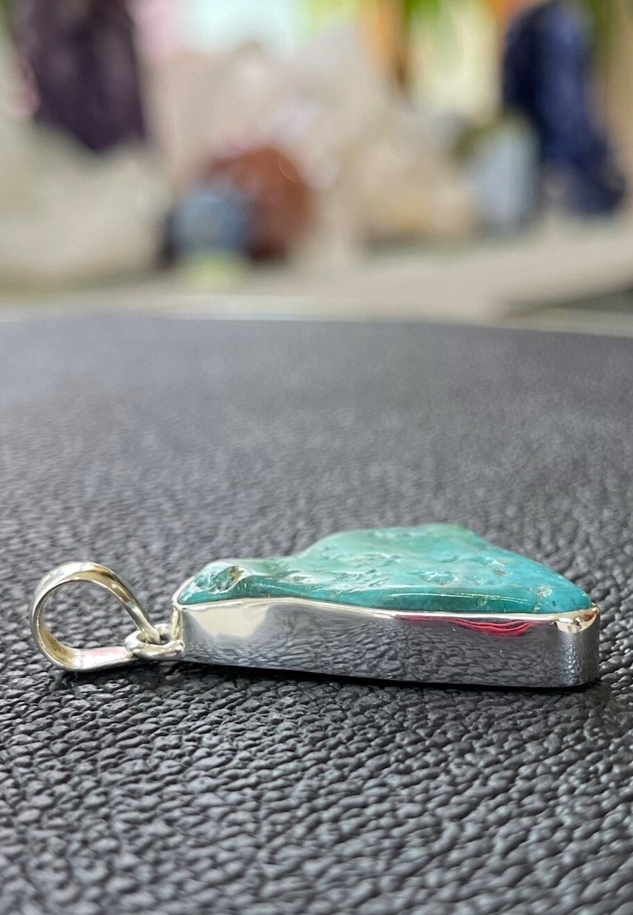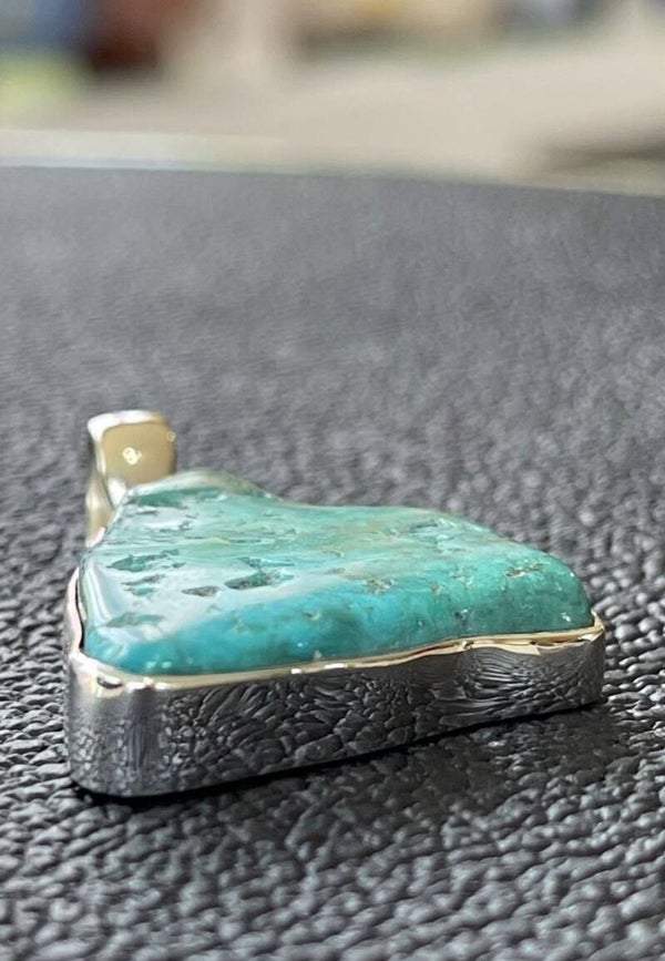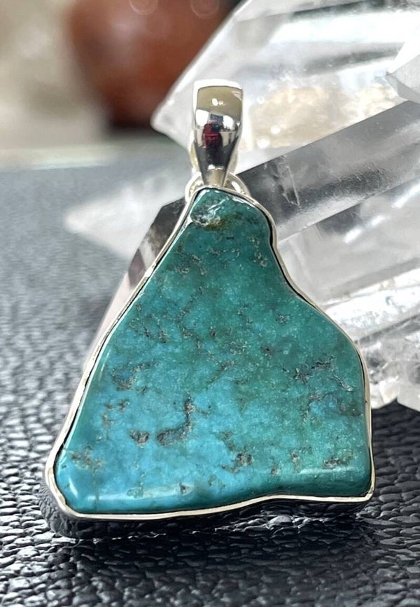 Zilveren hangertje met ruw getrommelde Turkoois edelsteen uit Arizona, free form, medium
