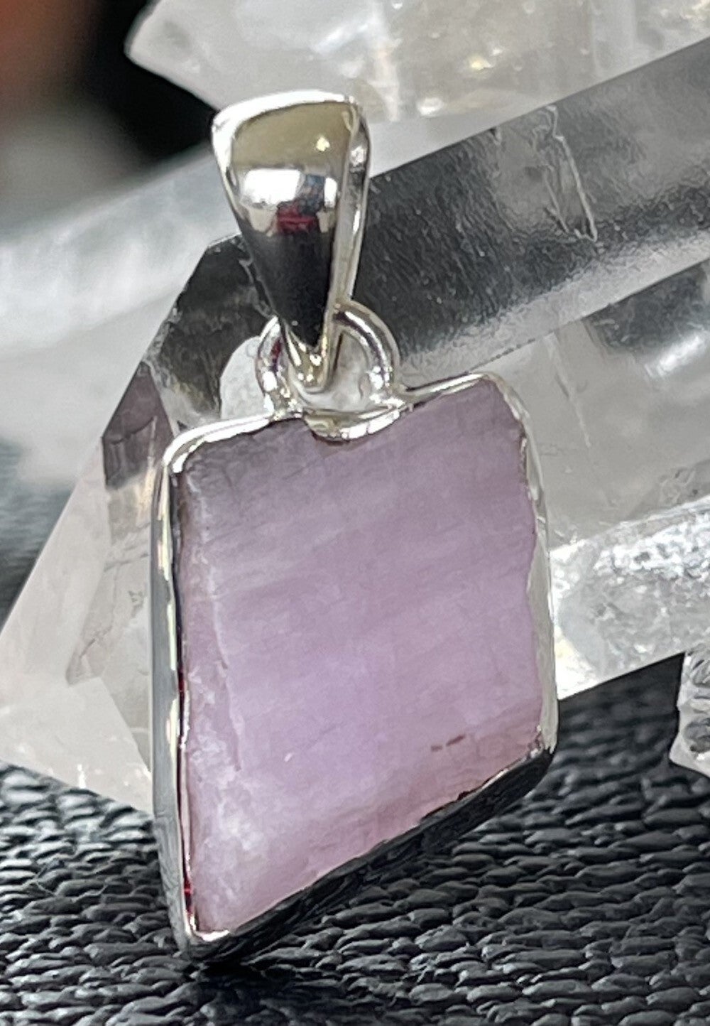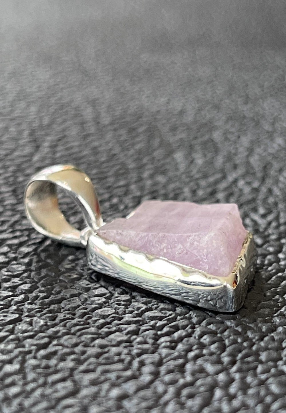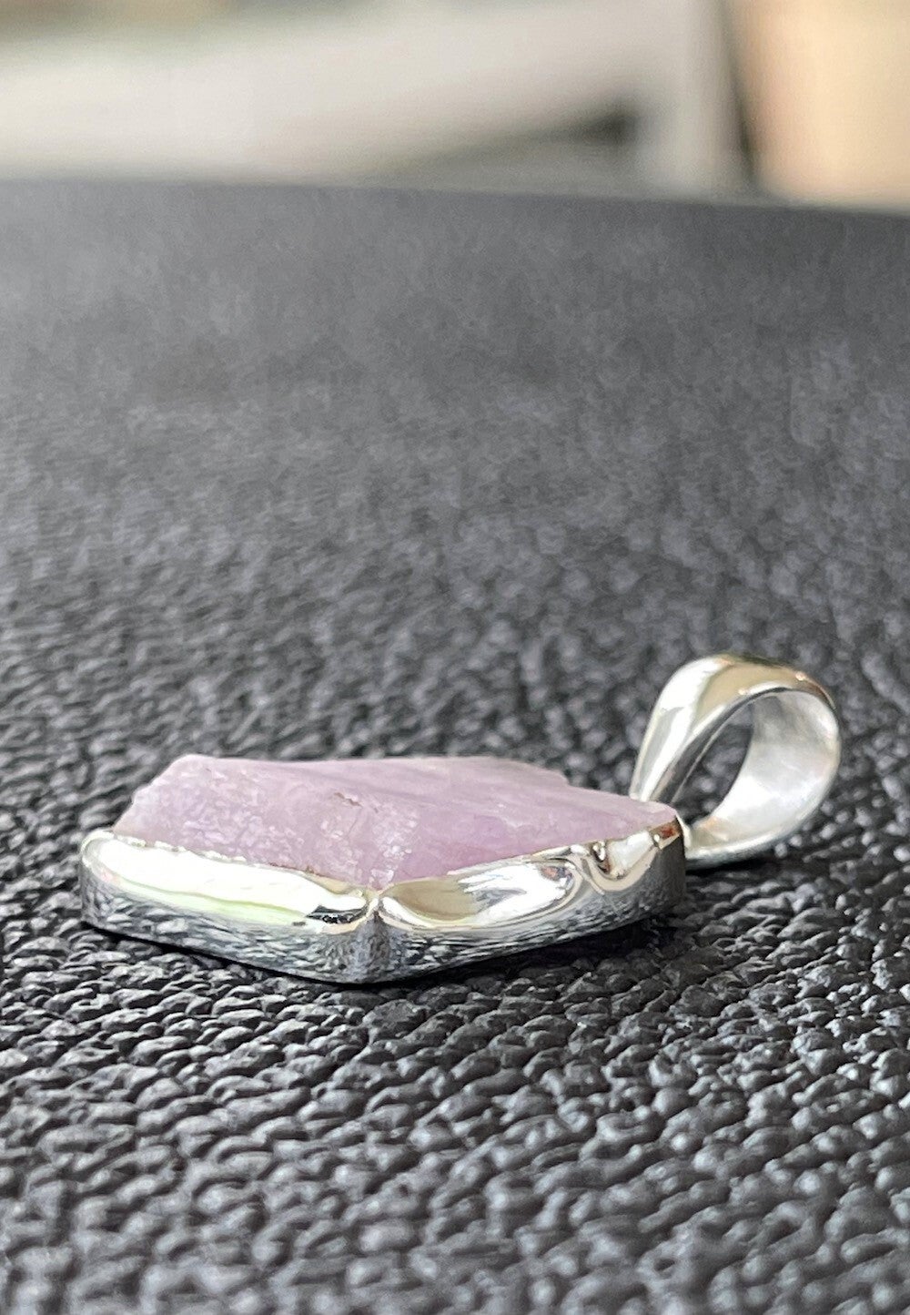 Zilveren hangertje met ruwe Kunziet edelsteen free form