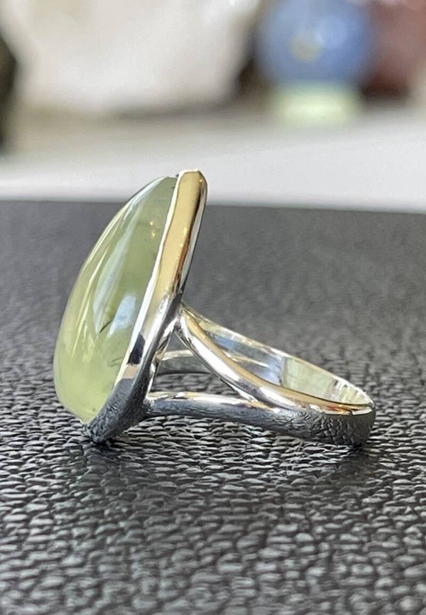 Zilveren ring met Prehniet edelsteen cabochon druppel