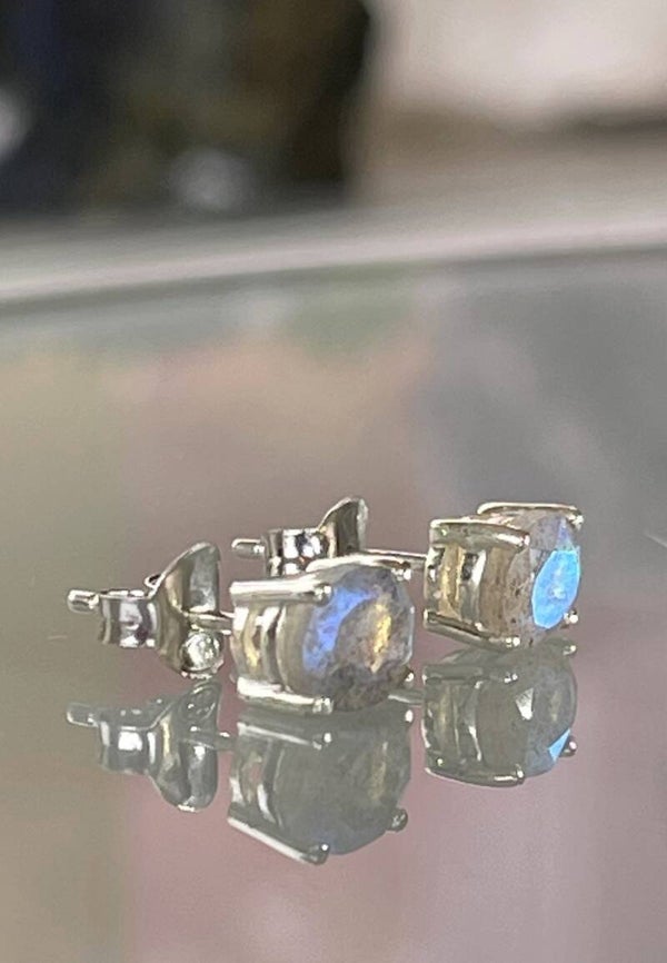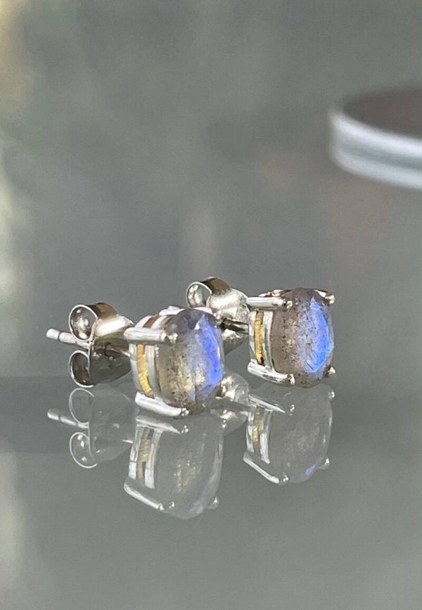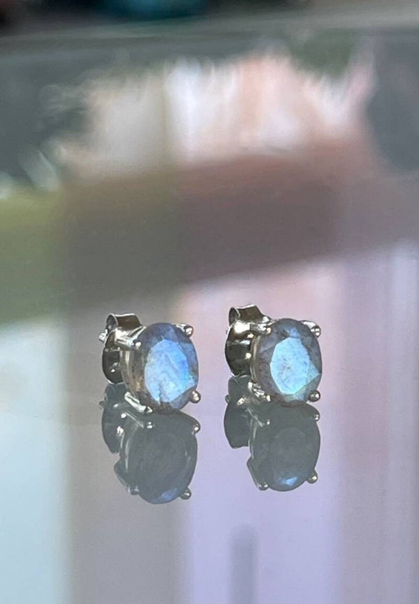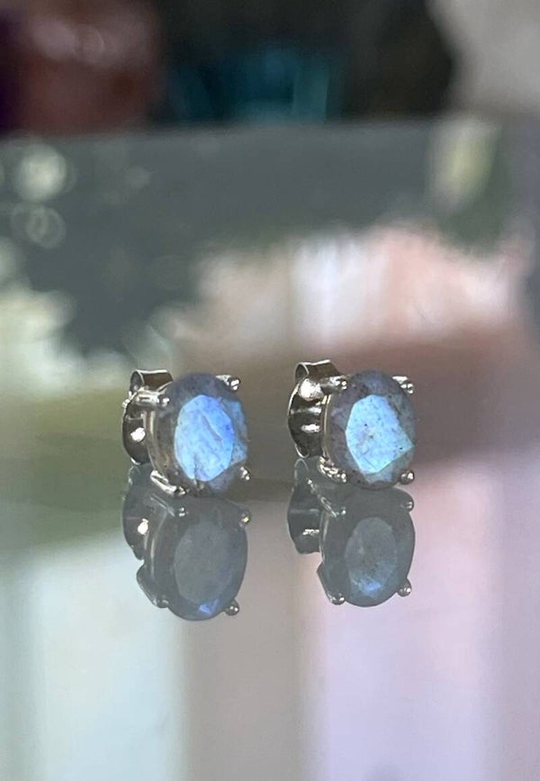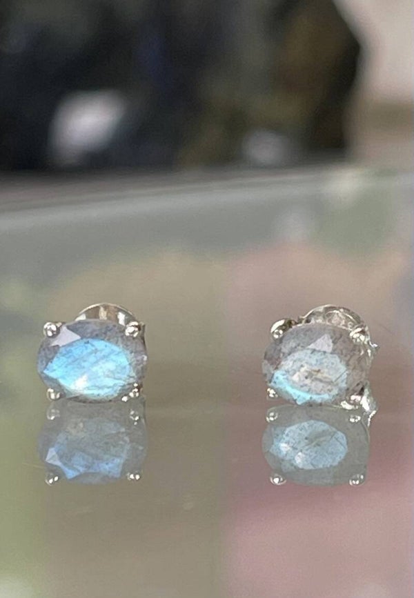 Zilveren oorstekers met Labradoriet edelstenen facet geslepen ovaal