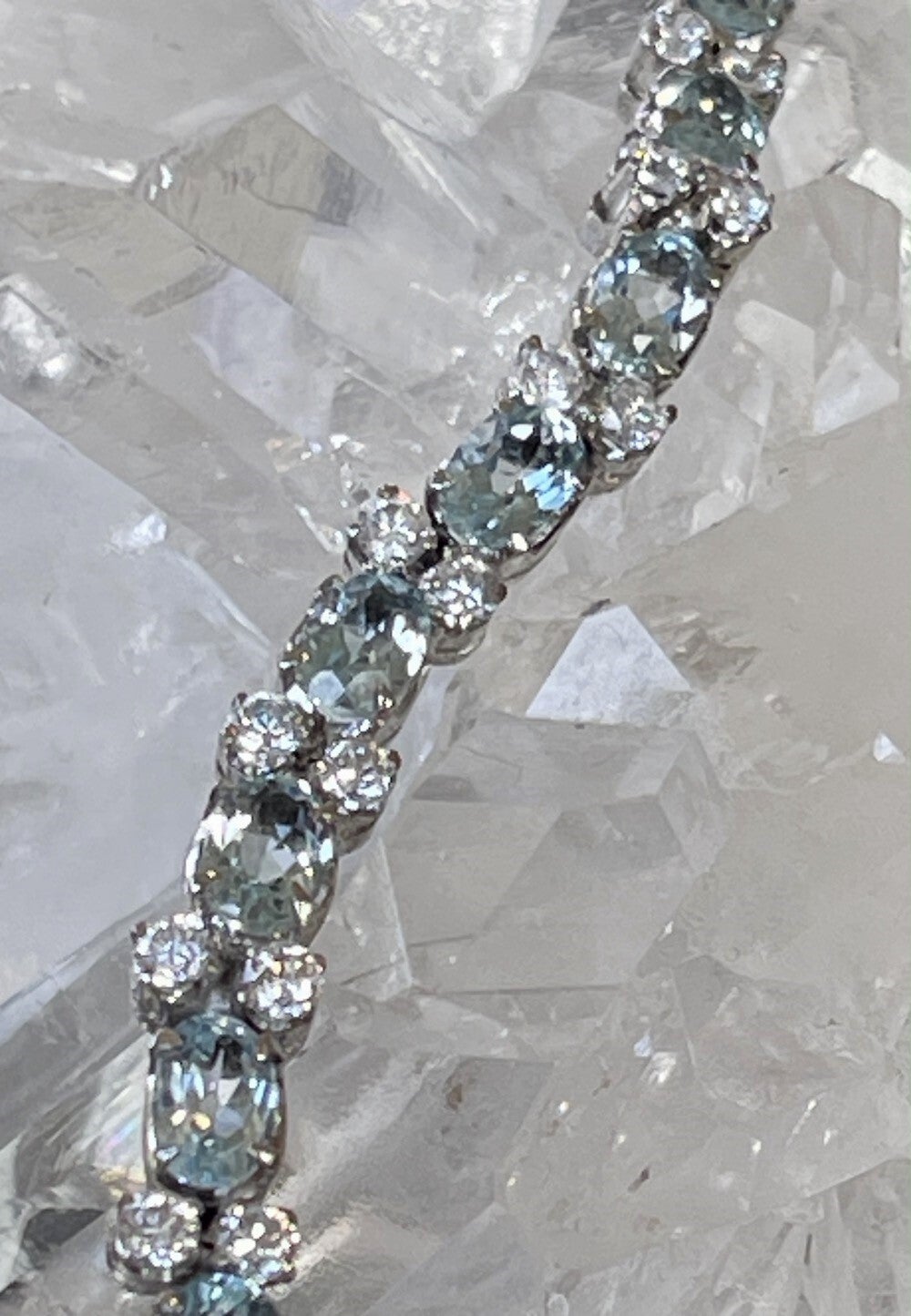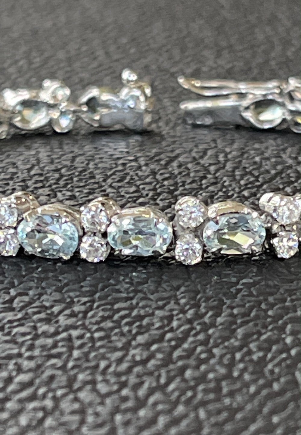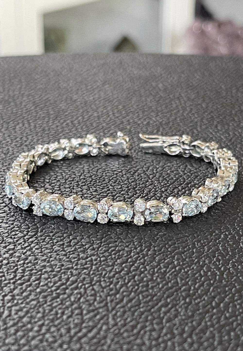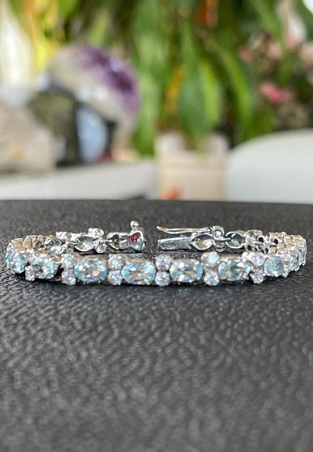 Zilveren armband met Blauwe Topaas edelstenen en Zirkonia facet geslepen ovaal, met veiligheidssluiting