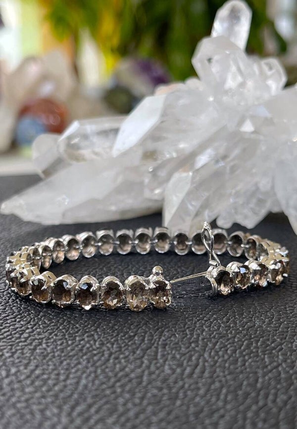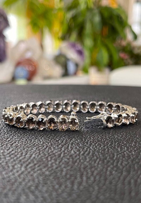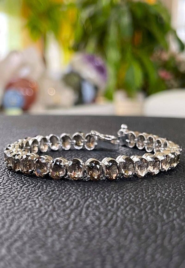 Zilveren armband met Rookkwarts edelstenen facet geslepen ovaal, met veiligheidssluiting
