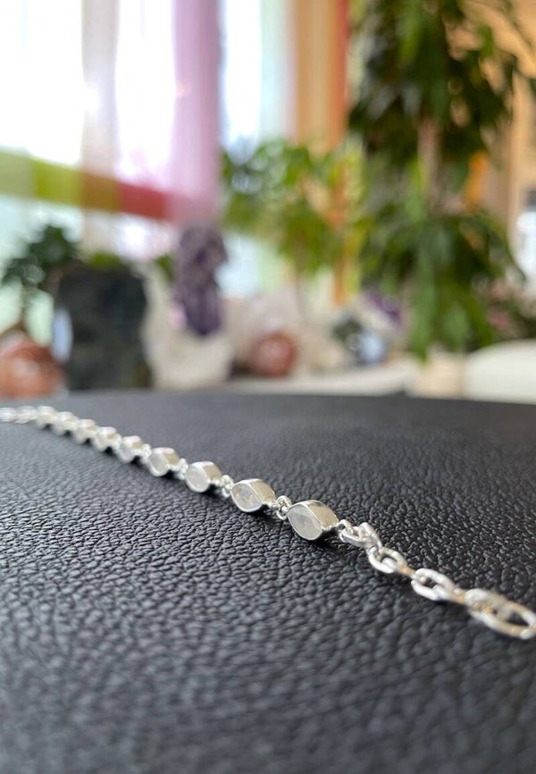 Zilveren armband met Regenboog Maansteen edelsteen markies-vorm facet geslepen, verstelbaar naar kortere lengte