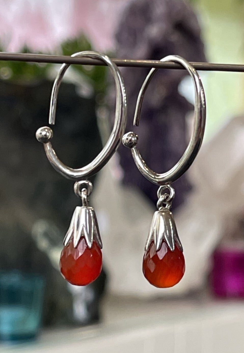 Zilveren oorbellen met Carneool edelstenen facet geslepen druppel
