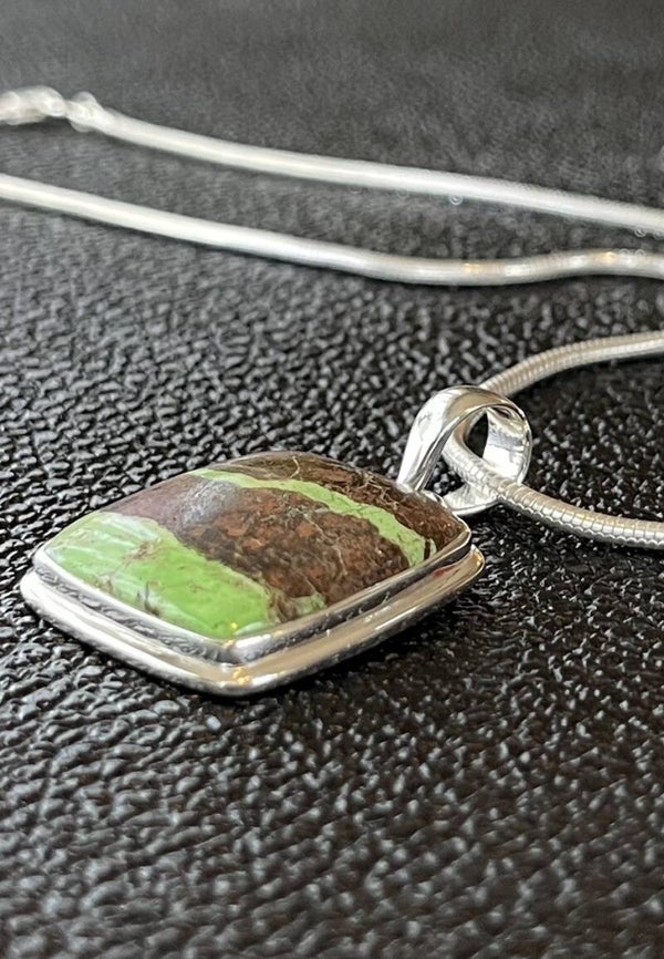 Zilveren hangertje met Gaspeiet edelsteen, cabochon rechthoekig, medium, zonder ketting