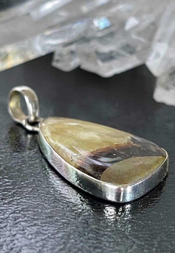 Zilveren hangertje met Septarie edelsteen cabochon free form, medium, zonder ketting