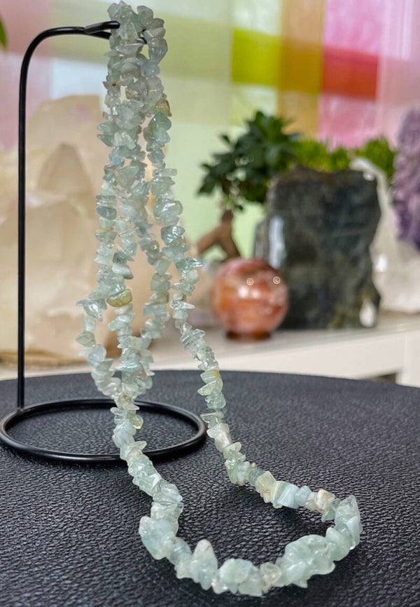 Aquamarijn heeft een sterk kalmerende werking, zowel geestelijk als lichamelijk. Het maakt oprecht, eerlijk, tolerant, onbezorgd, ontspannen en vrolijk. Het helpt je in the flow komen en in het moment leven.