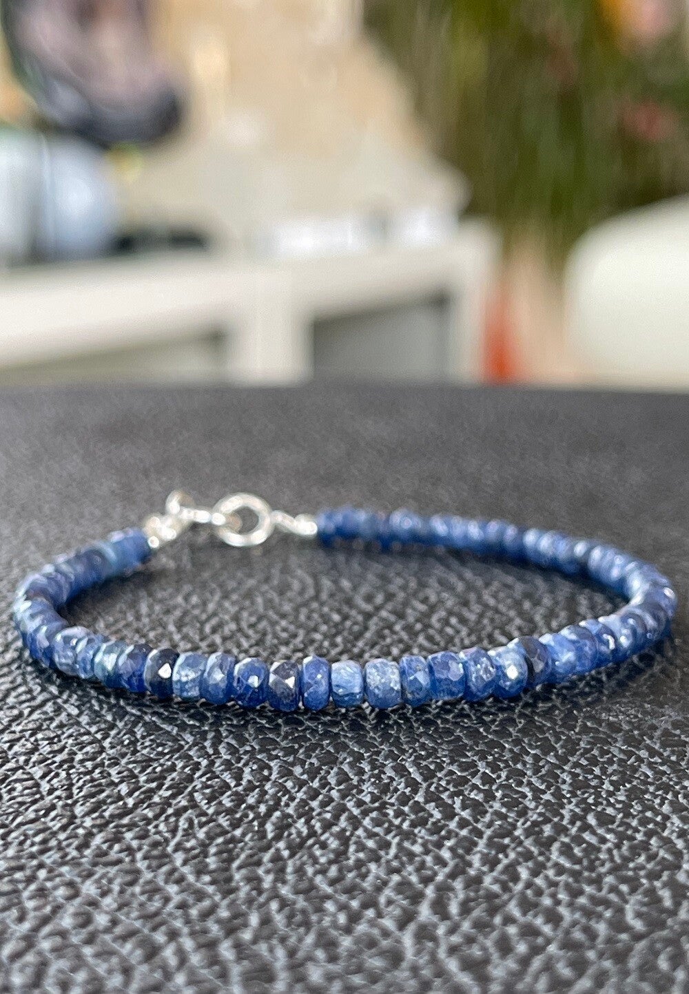 Armband met Saffier edelstenen facet geslepen kralen en zilveren sluiting