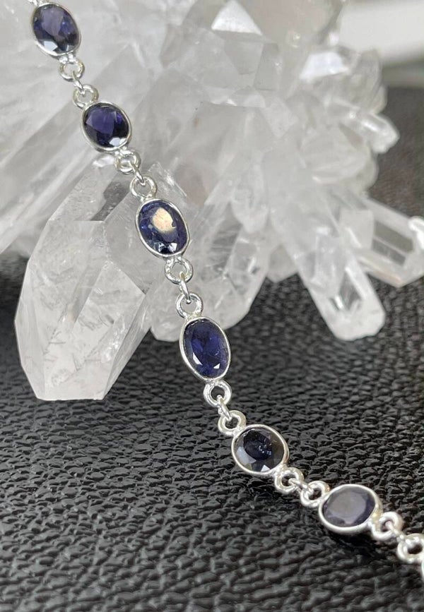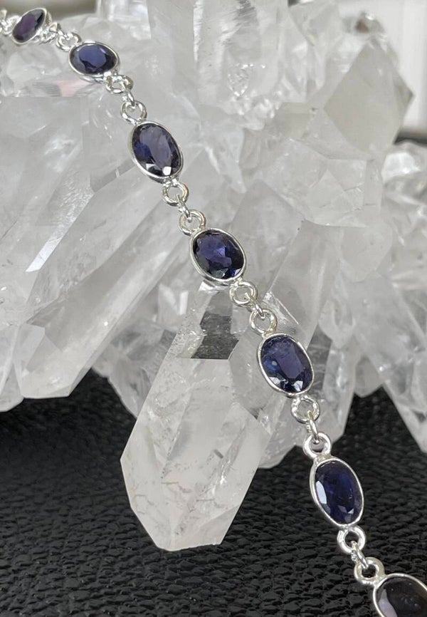 Zilveren armband met Ioliet edelstenen ovaal facet geslepen, verstelbaar naar kortere lengte