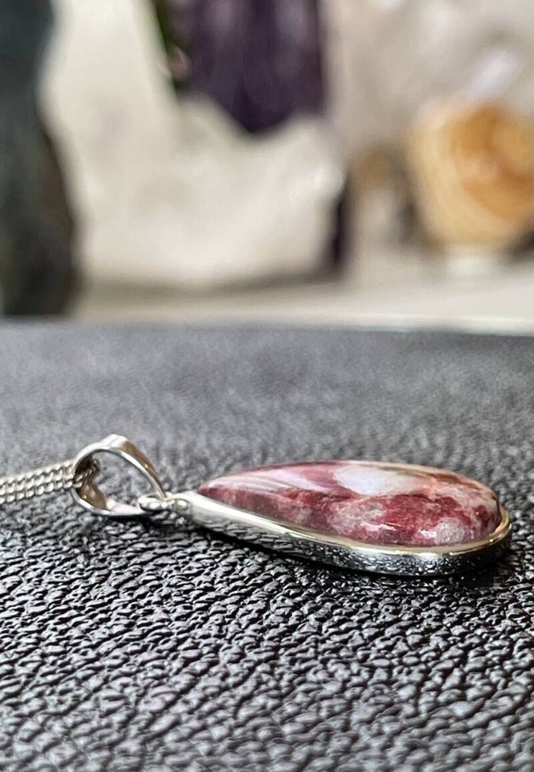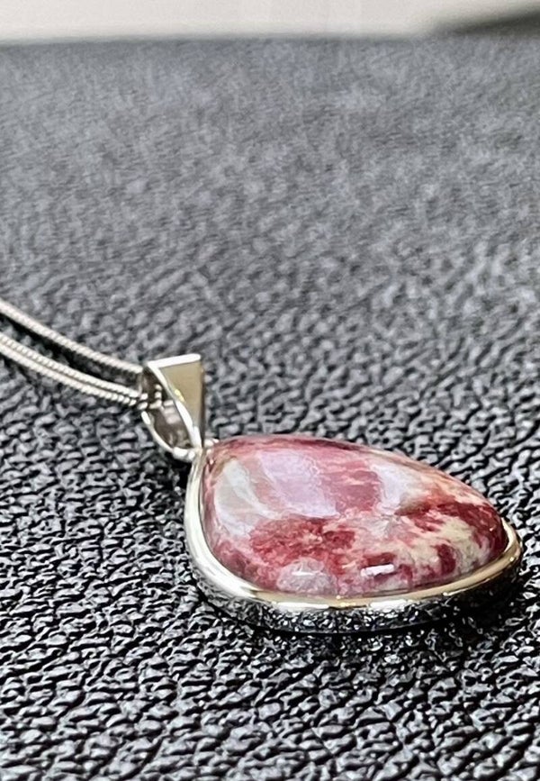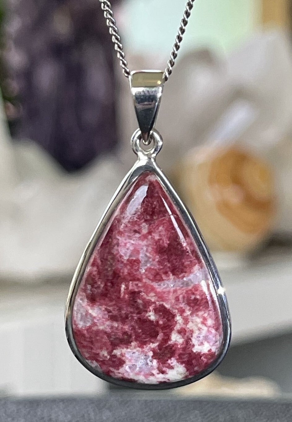 Zilveren hangertje met Thuliet edelsteen, cabochon druppel, medium, zonder ketting