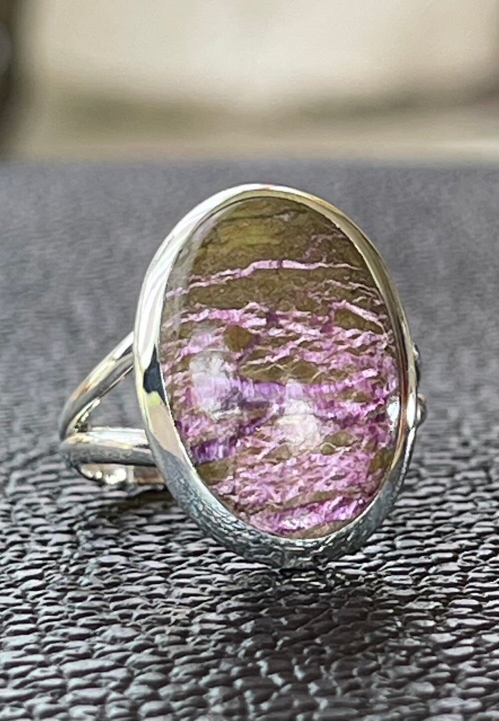 Zilveren ring met Purpuriet edelsteen cabochon ovaal