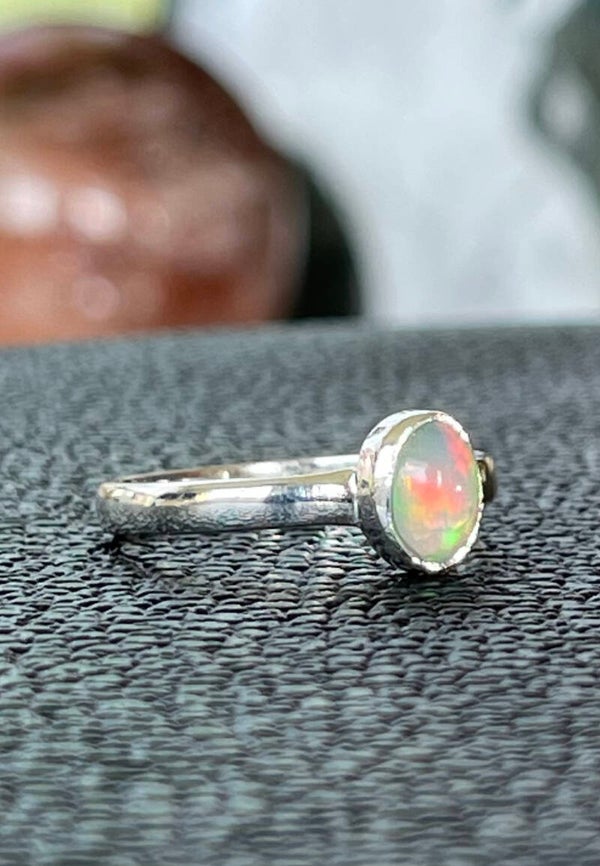 Opaal uit Ethiopië ring cabochon ovaal, maat 20