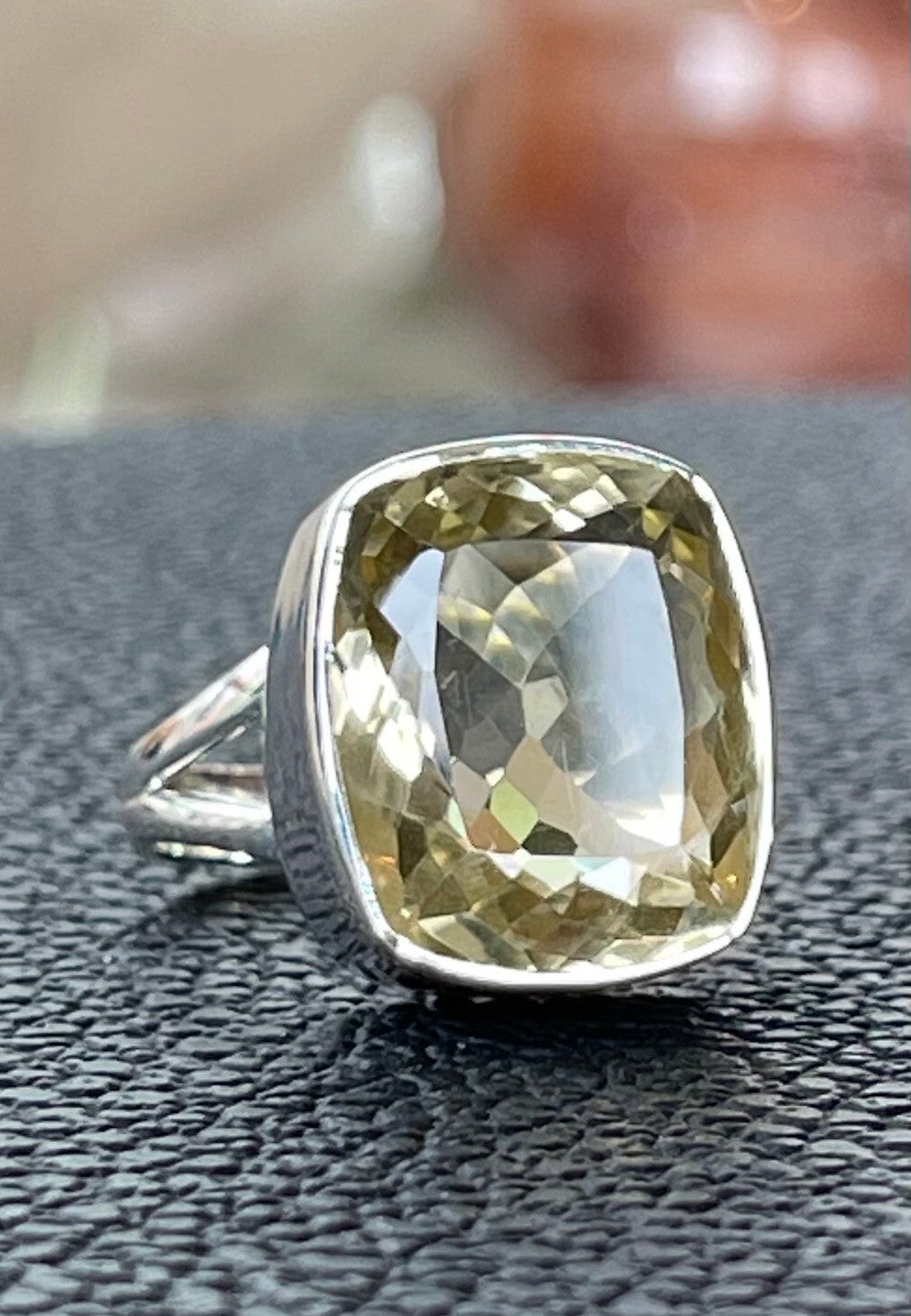 Lemon Topaas ring facet geslepen rechthoekig, maat 19,8