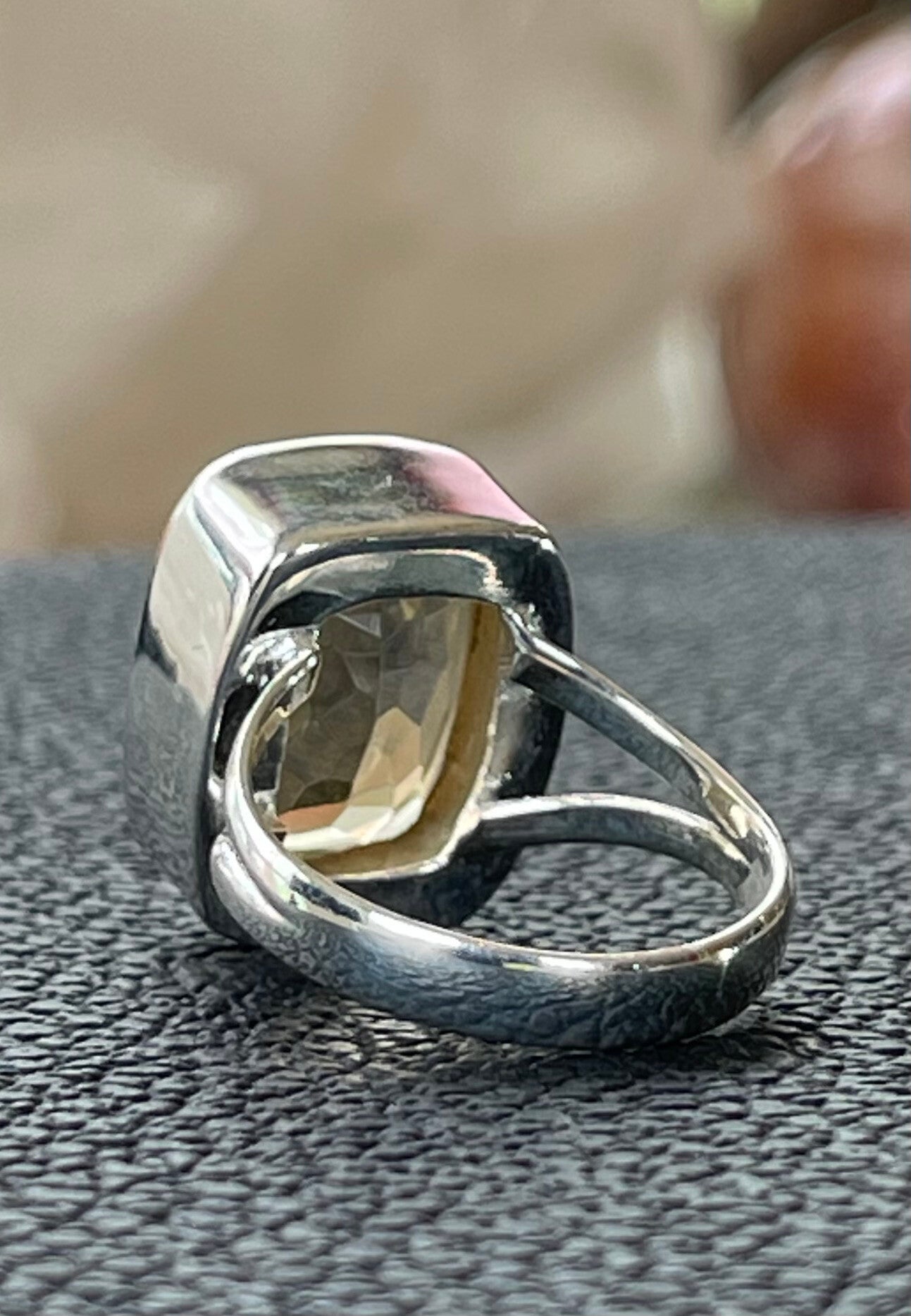 Zilveren ring met Citrien edelsteen facet geslepen rechthoekig