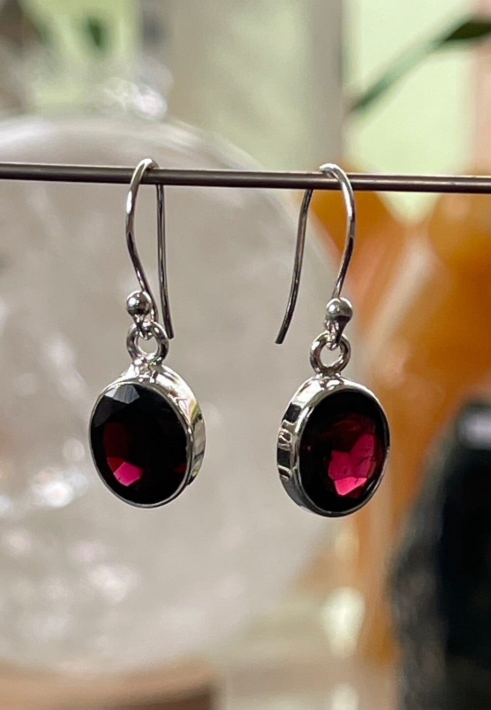 Zilveren oorbellen met Granaat edelstenen facet geslepen ovaal