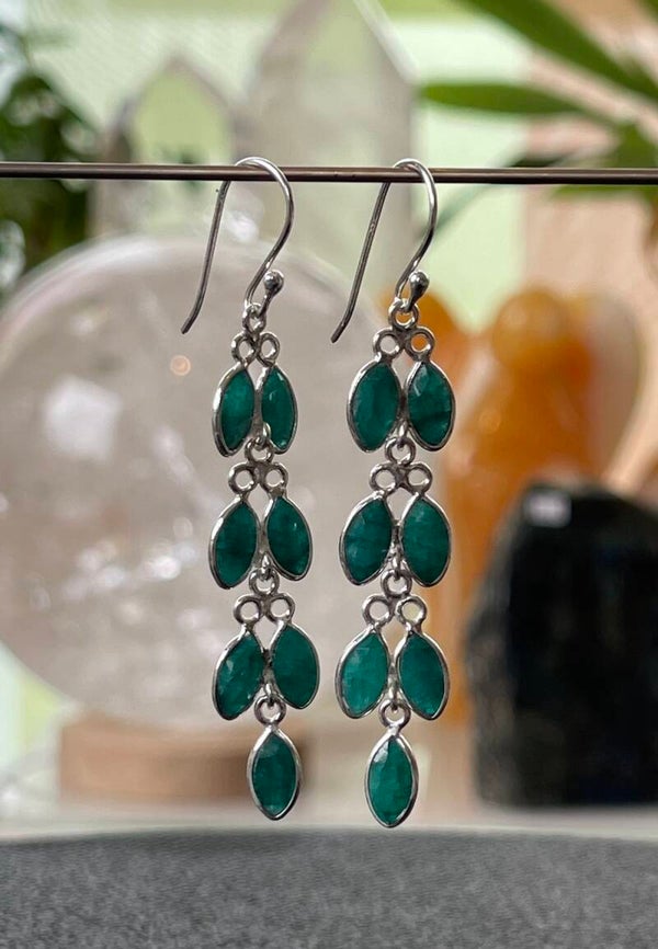 Smaragd oorbellen facet geslepen marquise vorm, lang