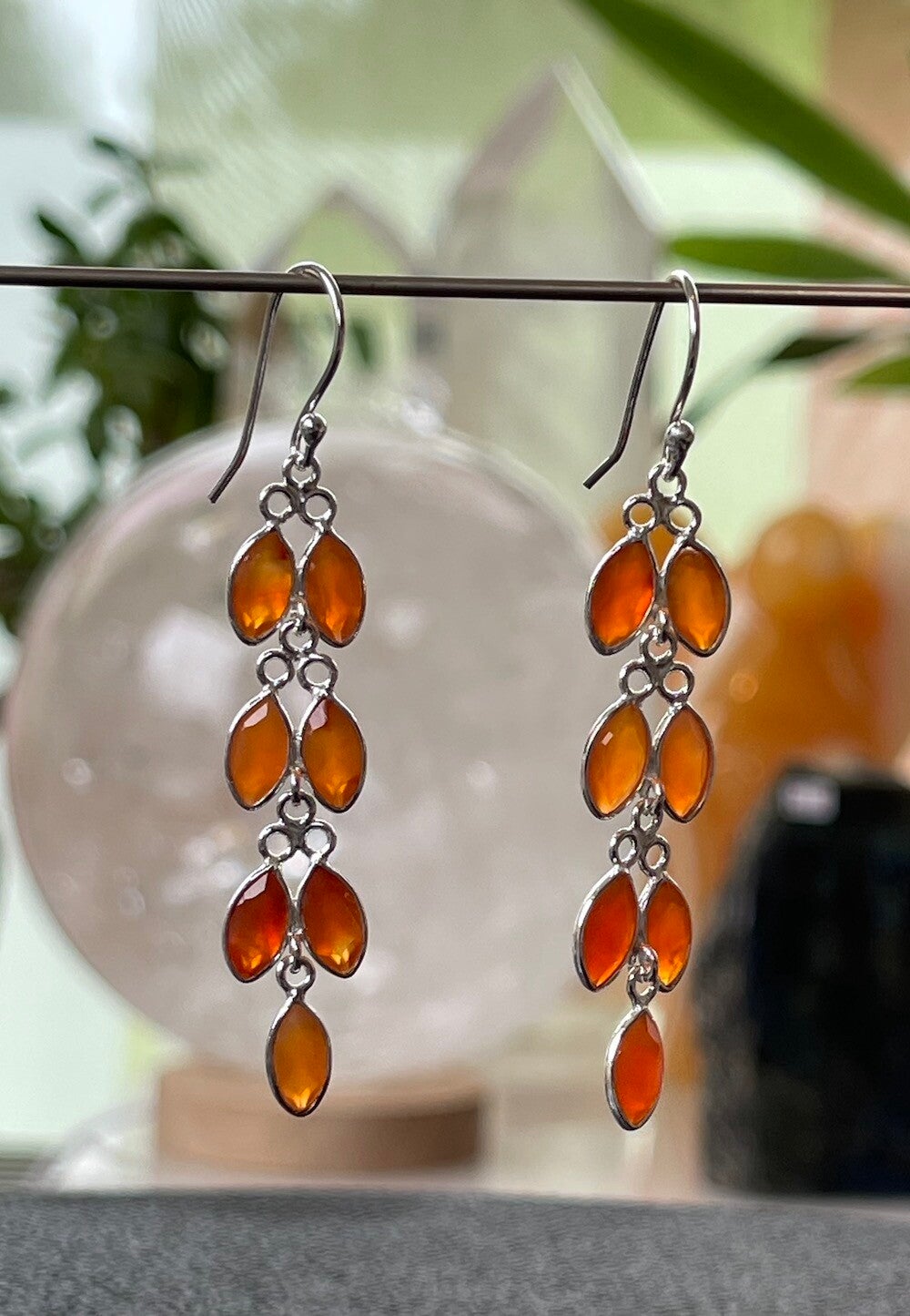 Carneool oorbellen facet geslepen marquise vorm, lang