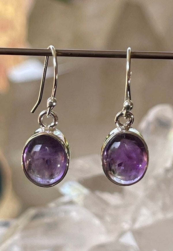 Zilveren oorbellen met Amethist edelstenen cabochon ovaal
