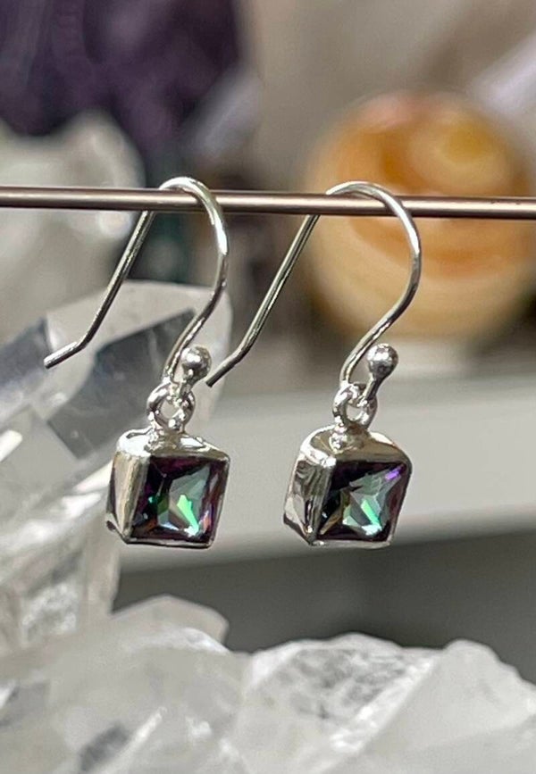 Mystic Topaas oorbellen facet geslepen vierkant, klein