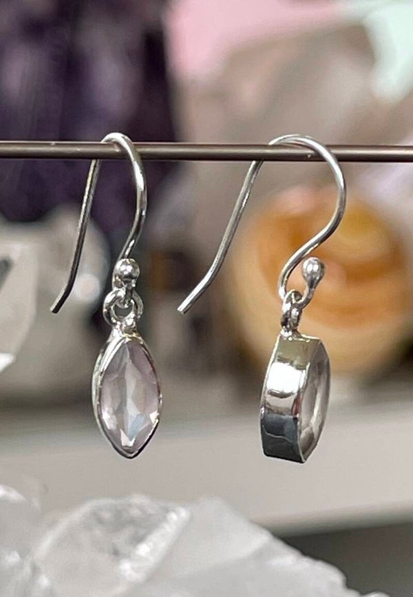 Zilveren oorbellen met Rozenkwarts edelstenen facet geslepen markies-vorm, klein